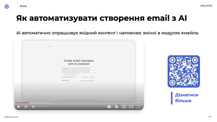 Також з нашим бізнес-партнером Stripo.email – найпопулярніший конструктор листів – ми запустили АІ-генератор листів, який допомагає оптимізувати створення текстів для масових розсилок.