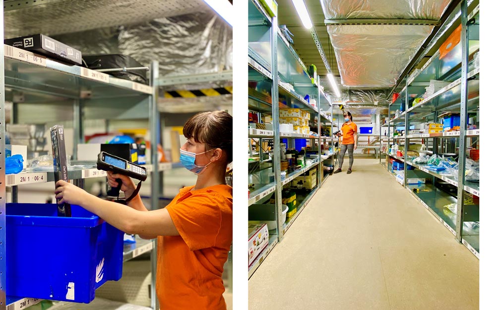 Головний інструмент співробітників ЦВЗ — термінал збору даних або сканер. Він слугує і картою, і контролером. Коли клієнт приходить за своїм замовленням та реєструється на стелі чи у касира, на сканері співробітника ЦВЗ одразу ж з’являється номер замовлення, яке необхідно підготувати до видачі, він бачить перелік товарів у ньому та номер комірки, де він лежить. Якщо замовлення розподілено по декількох комірках — наприклад, товари різних розмірів, — сканер підкаже, де який товар знайти. Навіть якщо аналогічний товар розміщено у сусідній комірці, комірник зобов’язаний взяти його з комірки, зазначеної у сканері навпроти номера замовлення.