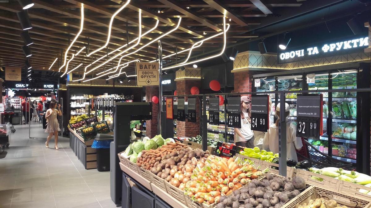 При вході покупців зустрічає fresh-арена, де розташовані сезонні, регіональні та екзотичні фрукти, овочі, зелень. Острів гастрономічних холодильних вітрин заповнений сирами, ковбасними та м’ясними делікатесами. Крім того, у магазині представлена молочна продукція, відділ свіжого м’яса з асортиментом свіжої свинини, телятини, м’яса птиці.