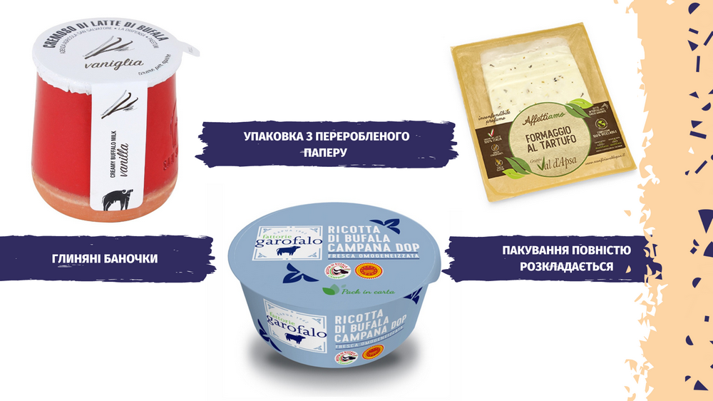 - упаковка з переробленого паперу та МАР-упаковка (модифіковане газове середовище), що дозволяє зберігати довше смак та органолептичні властивості, продовжує термін зберігання продукта.