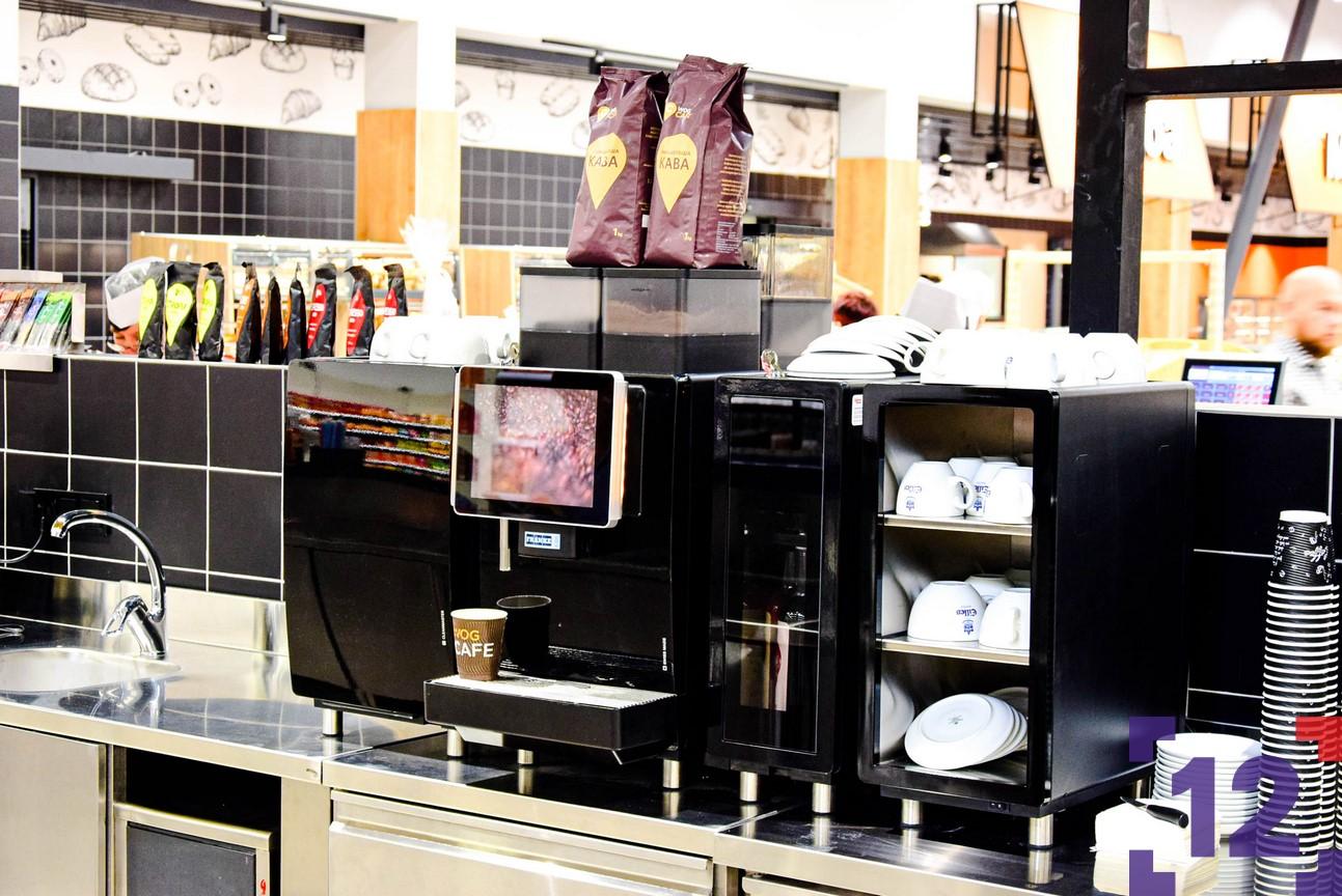 До речі, у гіпермаркеті створили для усіх кавоманів місце, де можна посмакувати каву або взяти її з собою. Тут встановили сучасні швейцарські кавові апарати, поставили стильні та зручні горнятка.