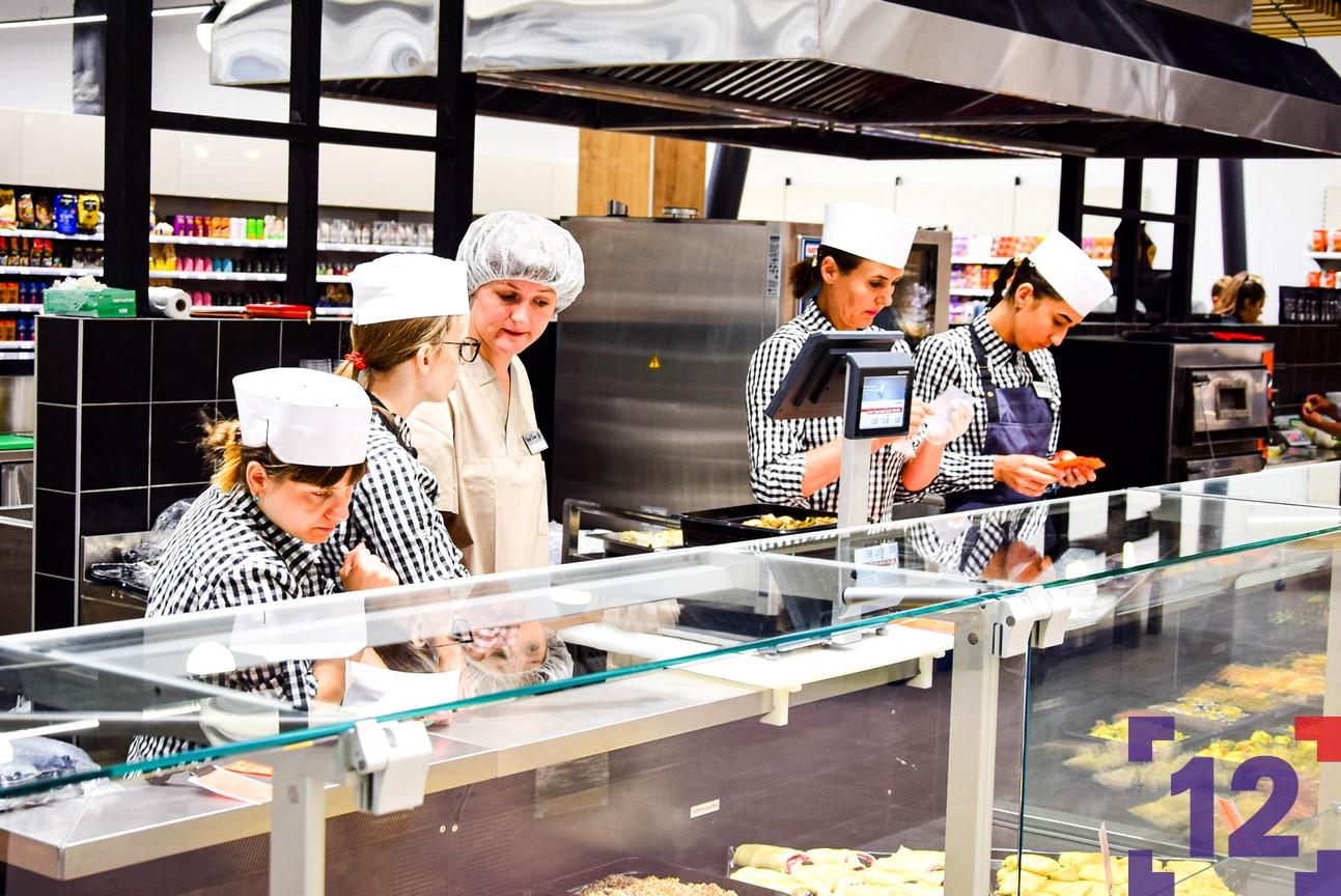В гіпермаркеті також створили 2500 кв. м виробничих приміщень (м’ясний, холодний і гарячий кулінарні цехи, кондитерська та пекарня). А на 1000 кв. м. знайшлося місце для торгових та сервісних відділів (банк, аптека, сувеніри, ювелірні вироби, фотоцентр, квіти, мобільні телефони).
