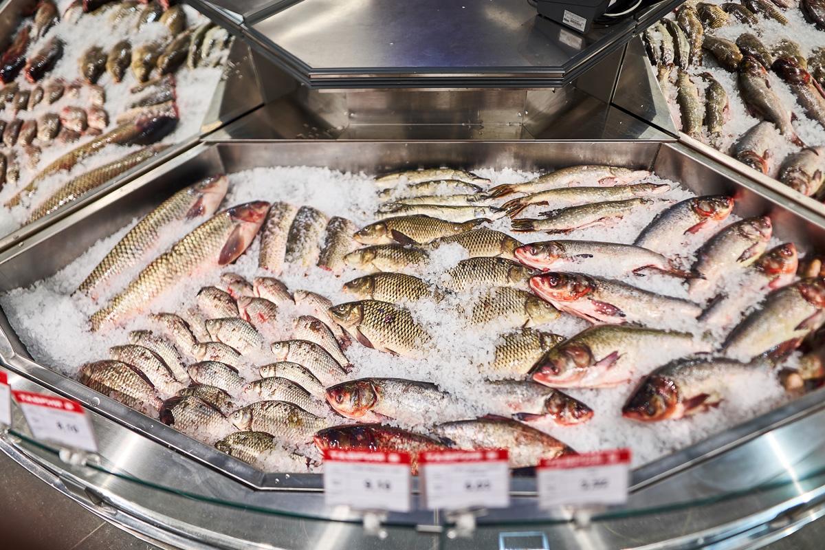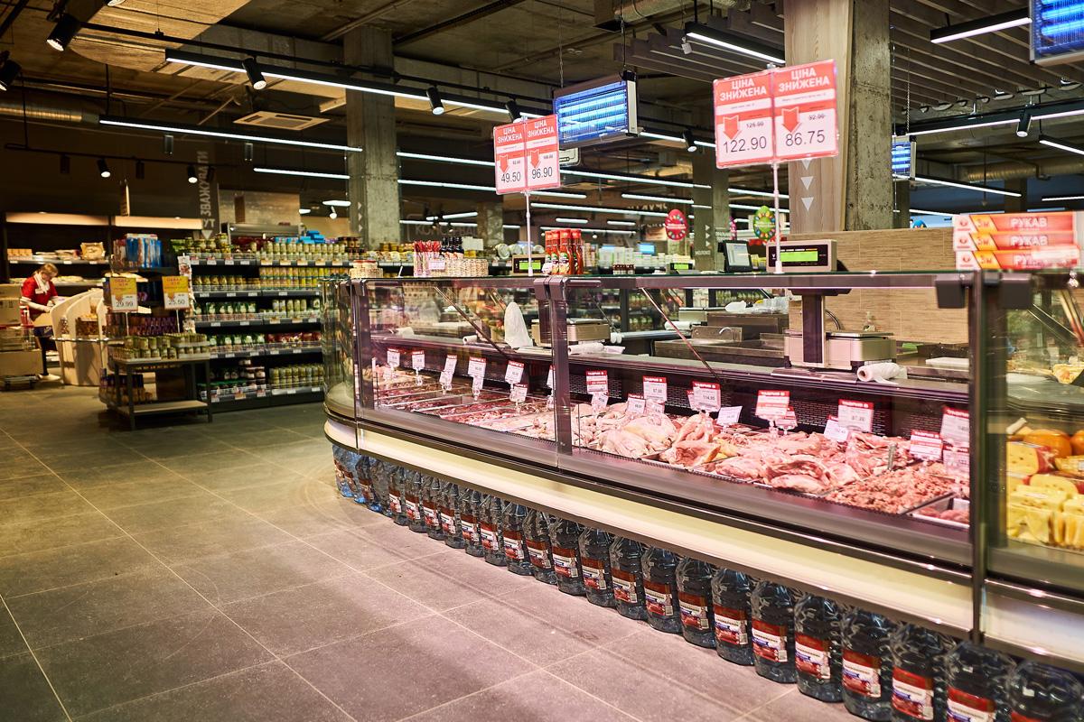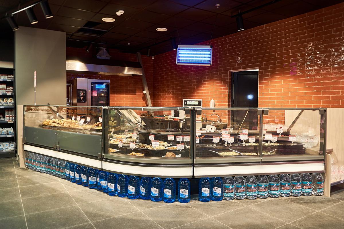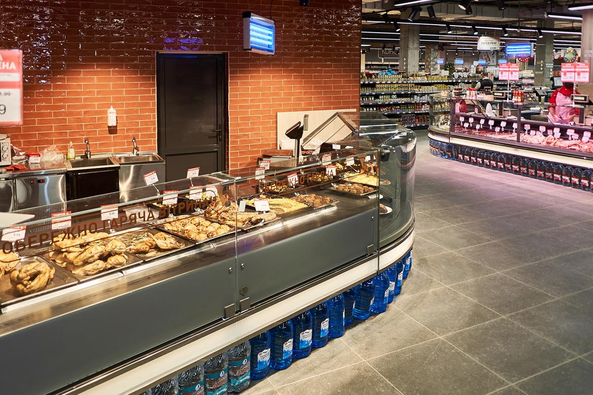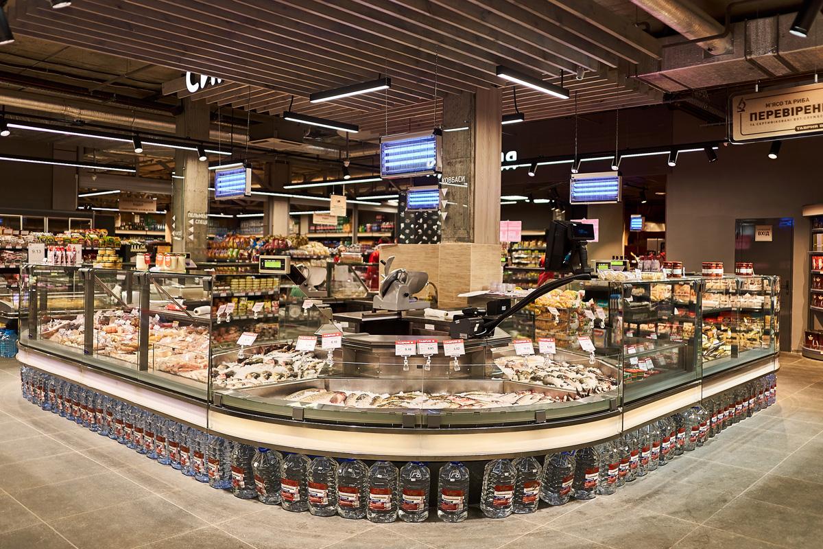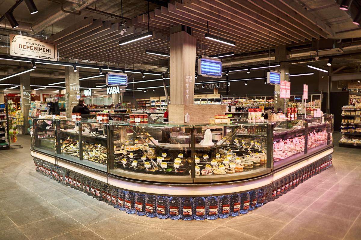 Центром експозиції в торговому залі став острів холодильних вітрин, який складається з модулів для продажу гастрономічних продуктів і кутового модуля для продажу риби на льоду.