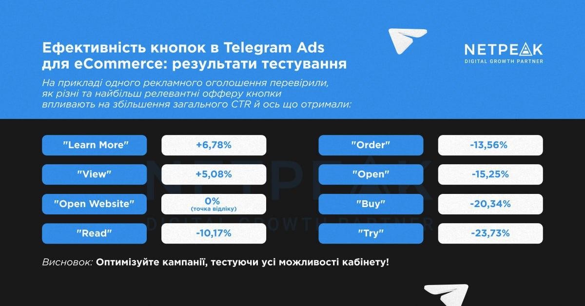 Результати тестування ефективності кнопок у Telegram Ads для e-сommerce