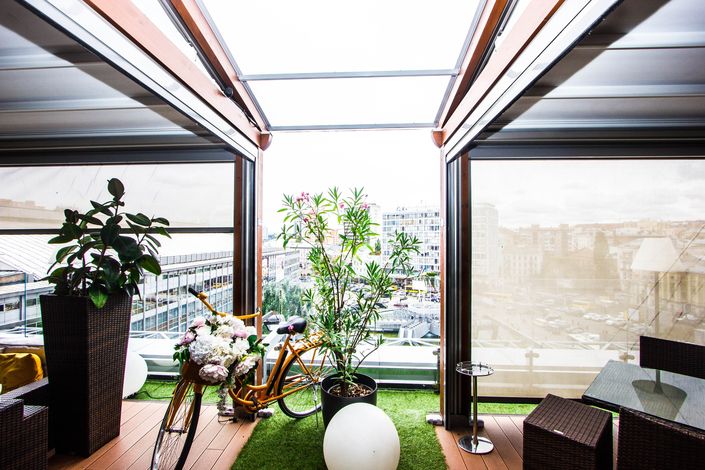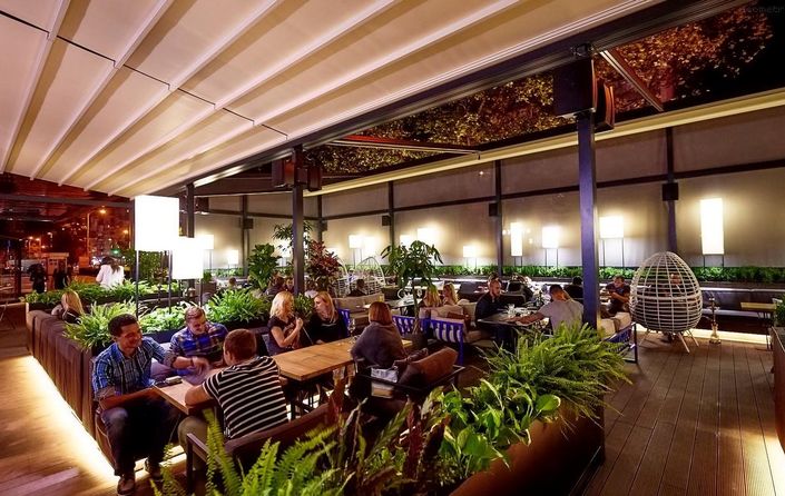 Тераса, всупереч розхожій думці – рішення не тільки для теплого сезону. Не обмежуйтеся столиками на тротуарах, встановіть стаціонарне накриття для тераси, закрийте бічні отвори, додайте теплі лампи, пледи і каміни – і затишний куточок для приємного проведення часу в будь-який час року вже готовий. Створюючи таким чином мікроклімат на своїй терасі, можна значно збільшити час перебування відвідувачів, а відповідно і середній чек гостя.