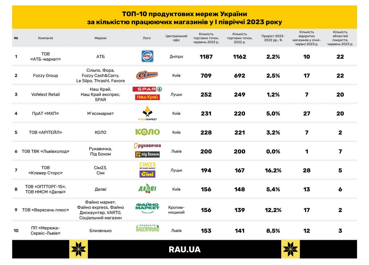 Топ-10 українських продуктових мереж за кількістю магазинів і темпами відкриттів у 2023 році