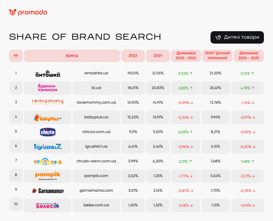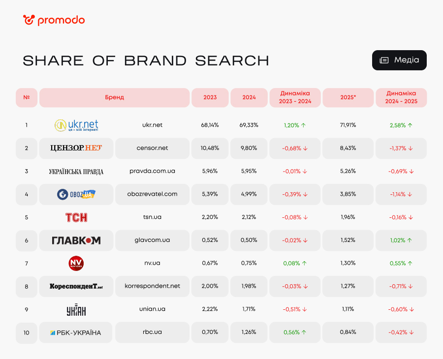 Маркетингова агенція Promodo представила нове дослідження найпопулярніших брендів в Україні. Рейтинг сформували за власною методологією, аналізуючи кількість брендових пошукових запитів у Google у різних категоріях.