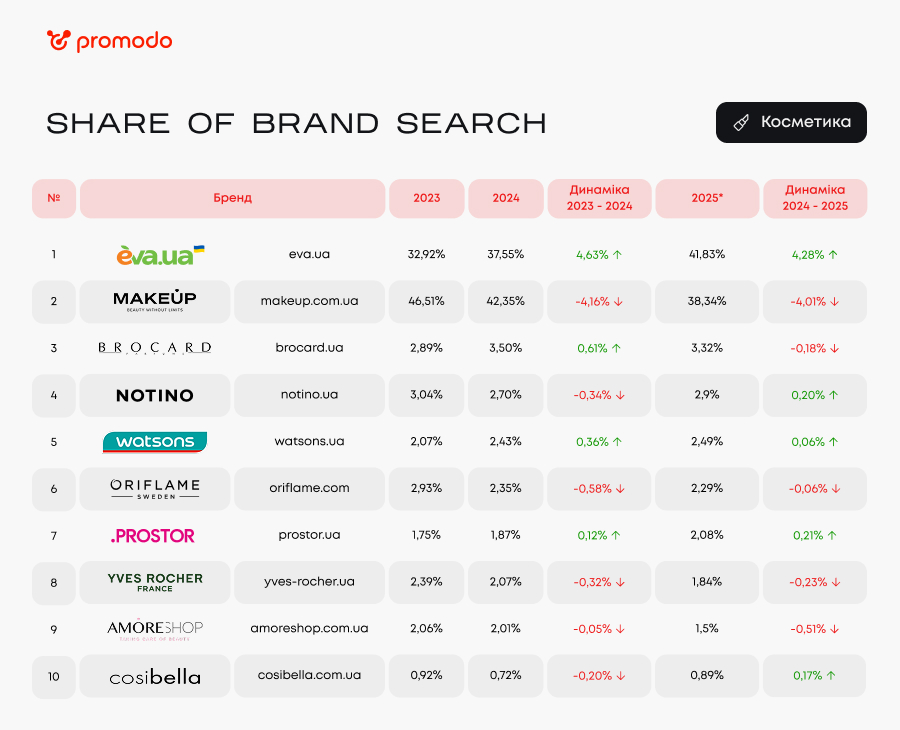 Першими оприлюднили топи за шістьма нішами: косметика, зоотовари, медіа, аптеки, дитячі та спортивні товари. В агенції додають, що перелік категорій планують оновлювати щомісяця.