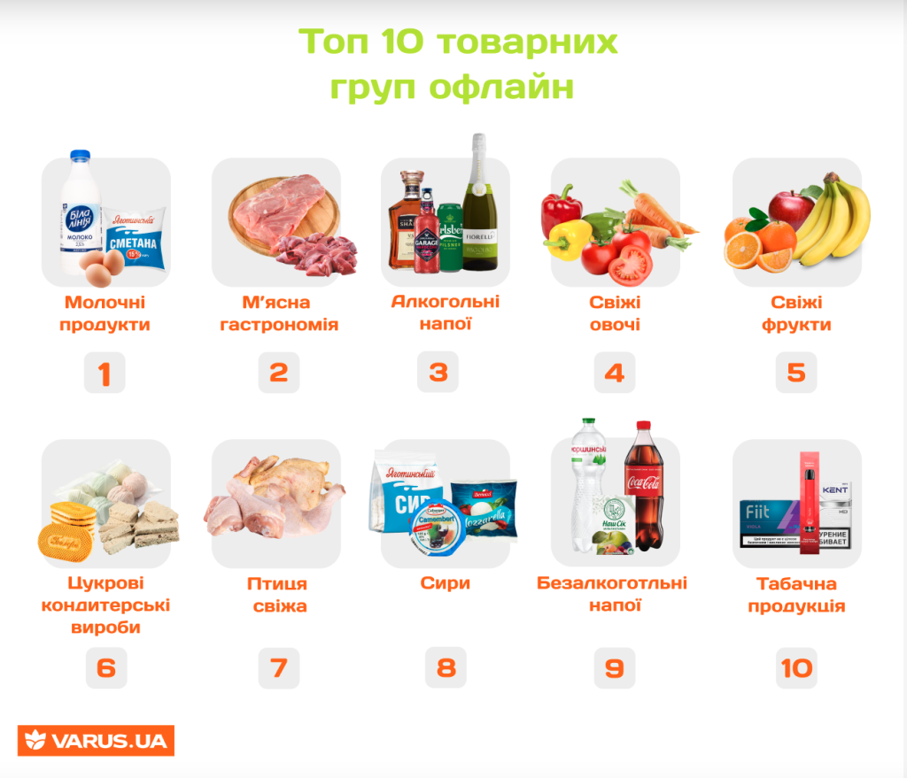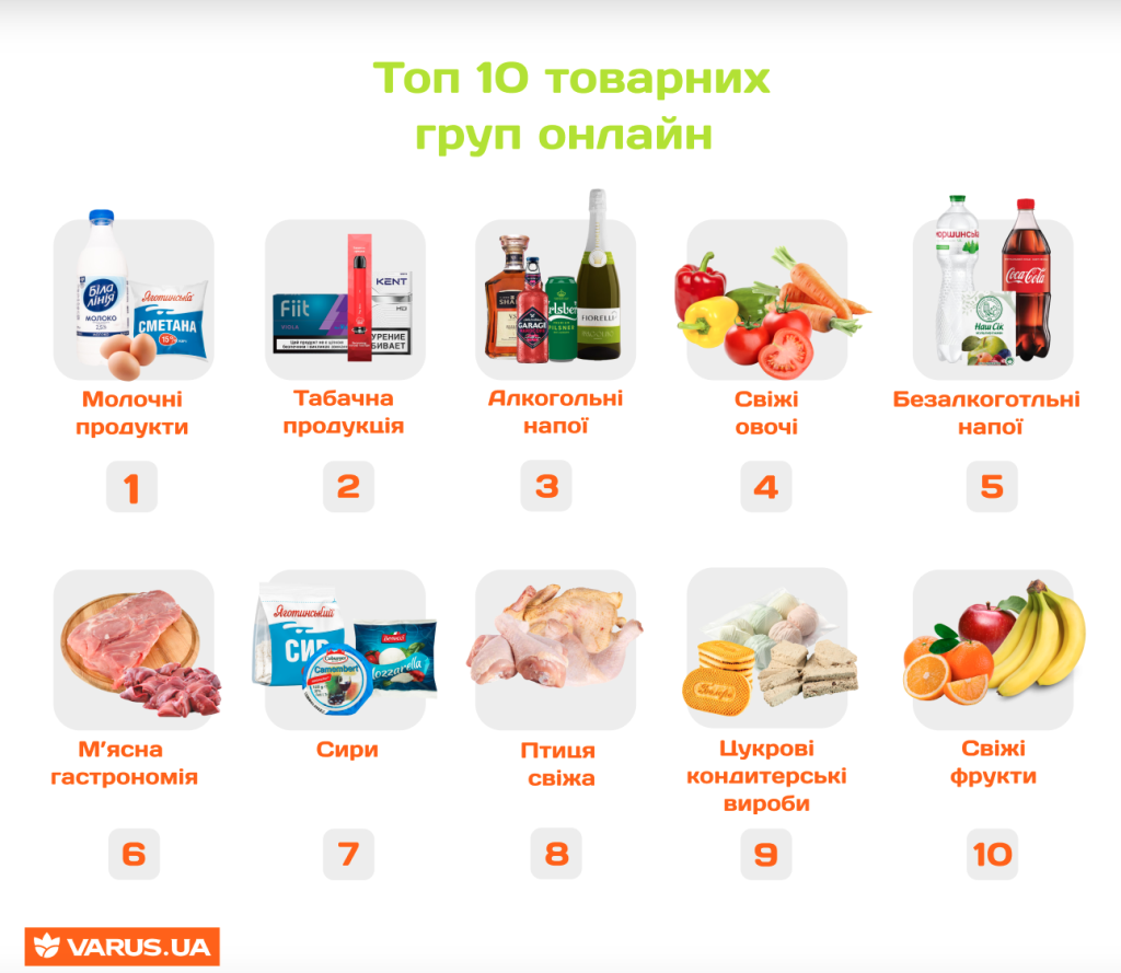 Топ-10 товарів, які найчастіше купують онлайн і офлайн – аналітика Varus