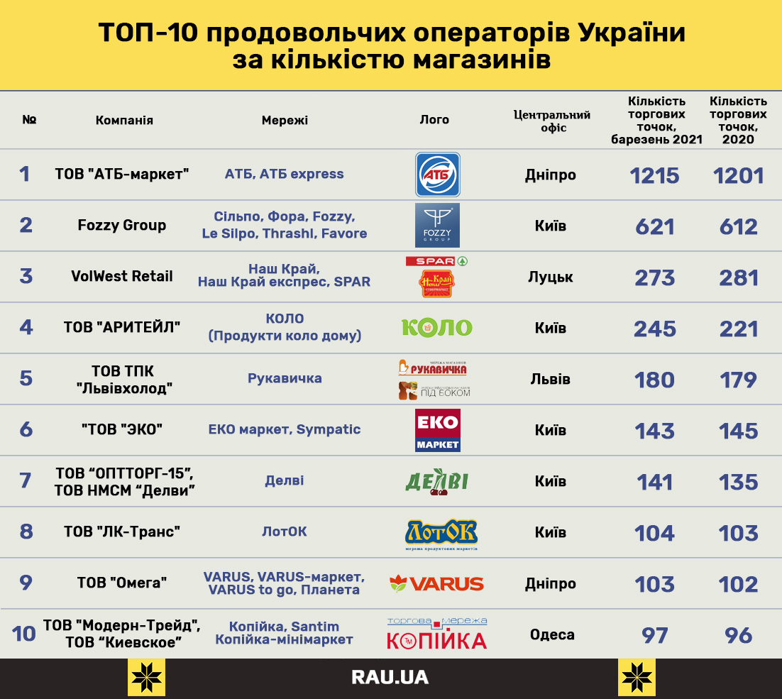 Після карантину: топ-10 українських продуктових мереж за кількістю магазинів і темпам відкриттів