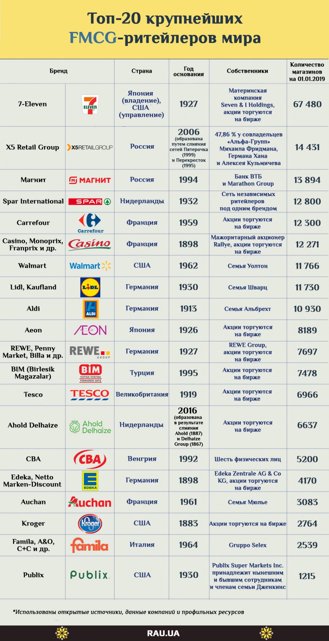 Топ-20 найбільших FMCG-мереж світу за кількістю торговельних точок (інфографіка)