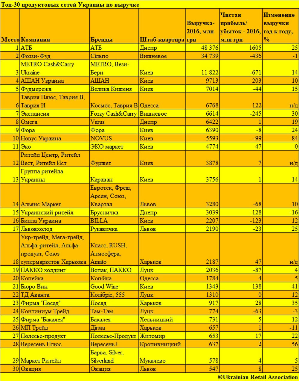 Неважко помітити, що крім усім відомих брендів, представлених в кожній області України, в топ-30 увійшло чимало і локальних рітейлерів. Причому нерідко вони демонструють значно кращі показники по зростанню обороту і прибутку, ніж лідери ринку.