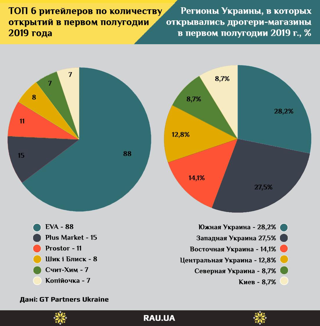 Якщо аналізувати географію відкриттів, то нескладно помітити, що пріоритетом для рітейлерів сегмента «товари для краси та здоров’я» стала Південна і Західна Україна. Більше половини всіх нових магазинів почали роботу саме в цих регіонах. Директор дослідницької компанії GT Partners Ukraine Ігор Гугля зазначає, що Південна Україна стала лідером в першу чергу через те, що EVA відкрила в цей період цілий ряд своїх магазинів на місці об’єктів мережі «Чистий дім».