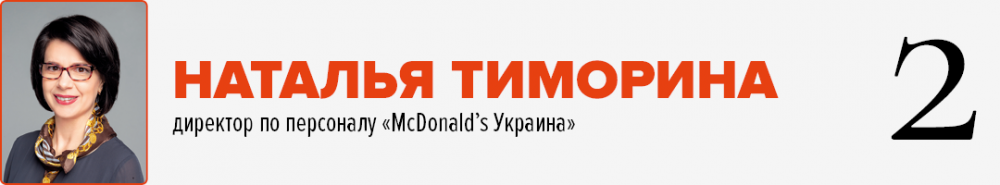 Наталія Тіморіна займається управлінням і розвитком талантів у McDonald’s в Україні вже більше 12-ти років. В її HR-команді 10 людей. Пріоритетними напрямками є розвиток талантів, кар’єрний і професійний ріст персоналу, адже всі директори ресторанів (а це 94 заклади по всій Україні) і багато співробітників центрального офісу починали свій кар’єрний шлях з обслуговування клієнтів в закладах.