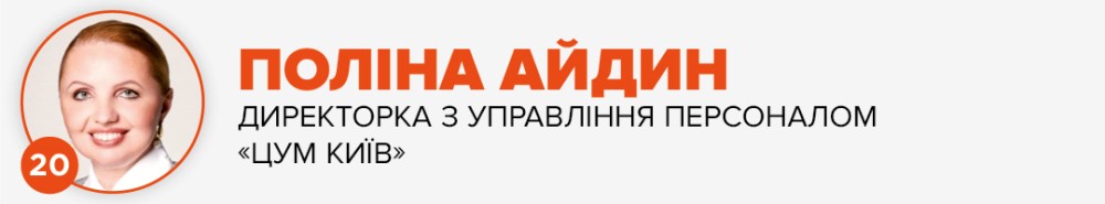 Поліна Айдин прийшла у київський ЦУМ на позицію HR-директора у 2018 році, маючи понад 10-річний досвід на керівних посадах у міжнародній компанії. Під її керівництвом у межах розвитку HR-стратегії ЦУМ започаткували низку знакових проектів, що сприяють розвитку корпоративної культури та просуванню бренда роботодавця ЦУМ Київ.
