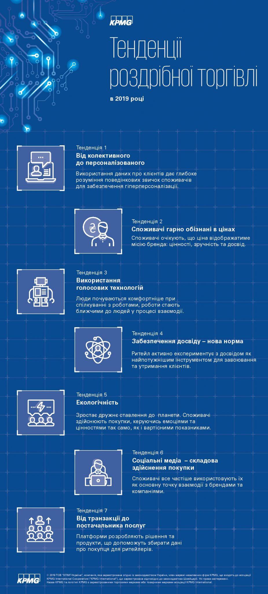 Відповідно до нового дослідження KPMG «Тенденції роздрібної торгівлі 2019», основною рушійною силою на ринку роздрібної торгівлі у 2019 році буде персоніфікація продуктів, що збільшить використання нових технологій та експериментів у галузі.