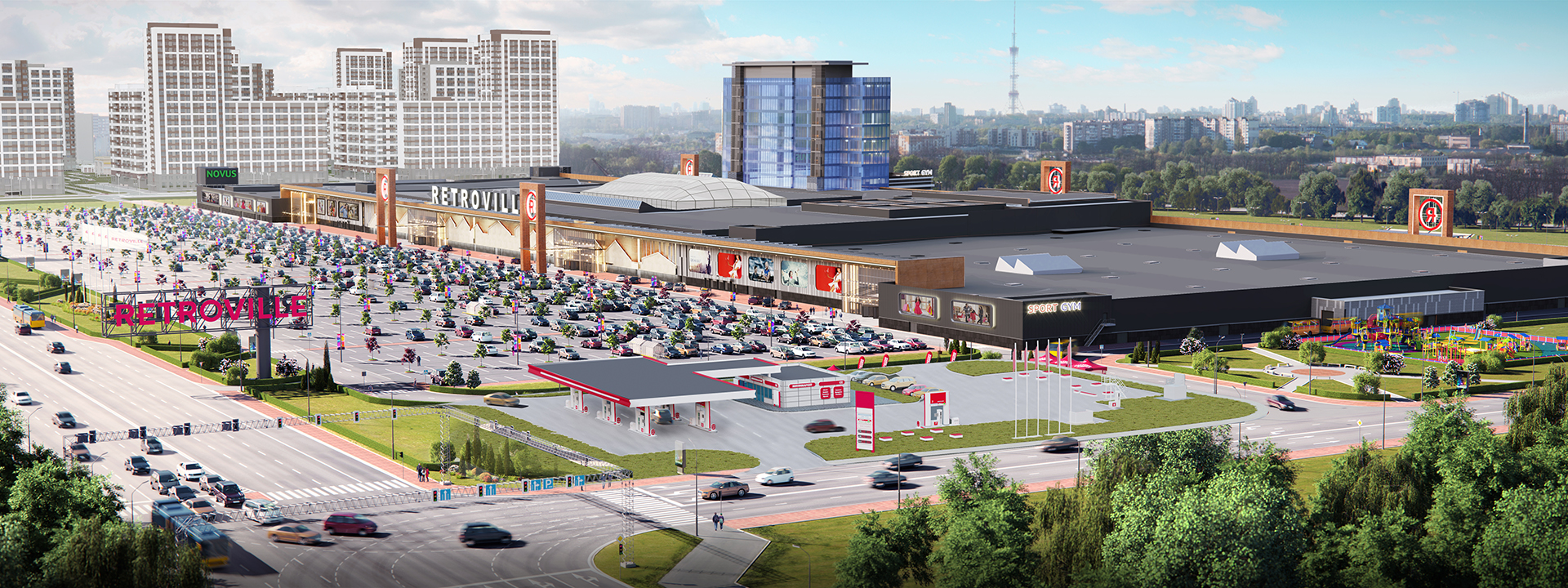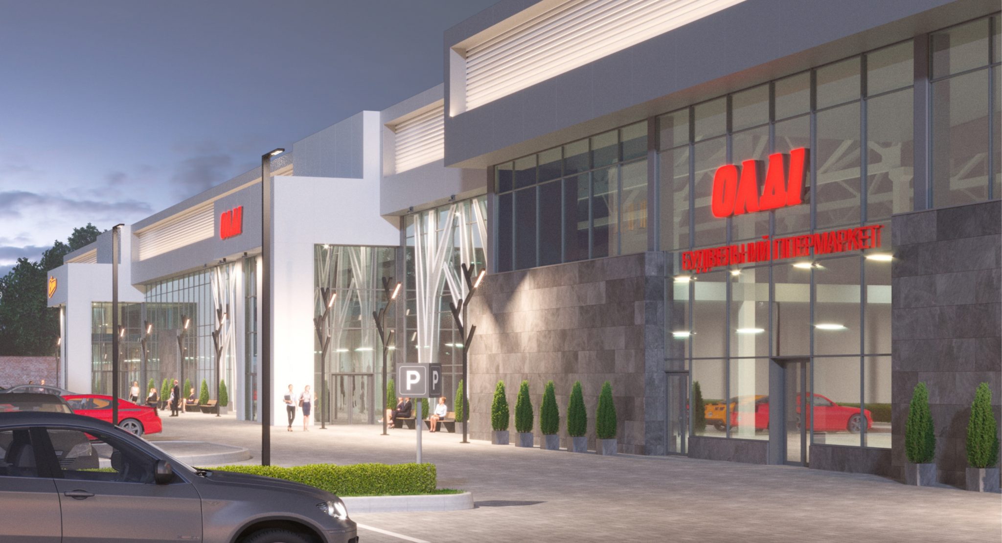 Якірними орендарями стануть будівельний другий в місті гіпермаркет OLDI, який займе 9000 кв. м, і флагманський магазин однієї з провідних вітчизняних продуктових мереж Сільпо, який відкриється в новій для компанії концепції.