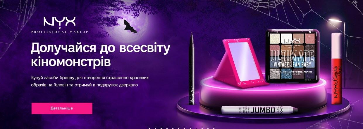 Makeup дарує знижку -25% на декоративну косметику бренду NYX, дає в подарунок розкладне дзеркало та пропонує одразу чотири моторошні макіяжі з покроковою інструкцією.