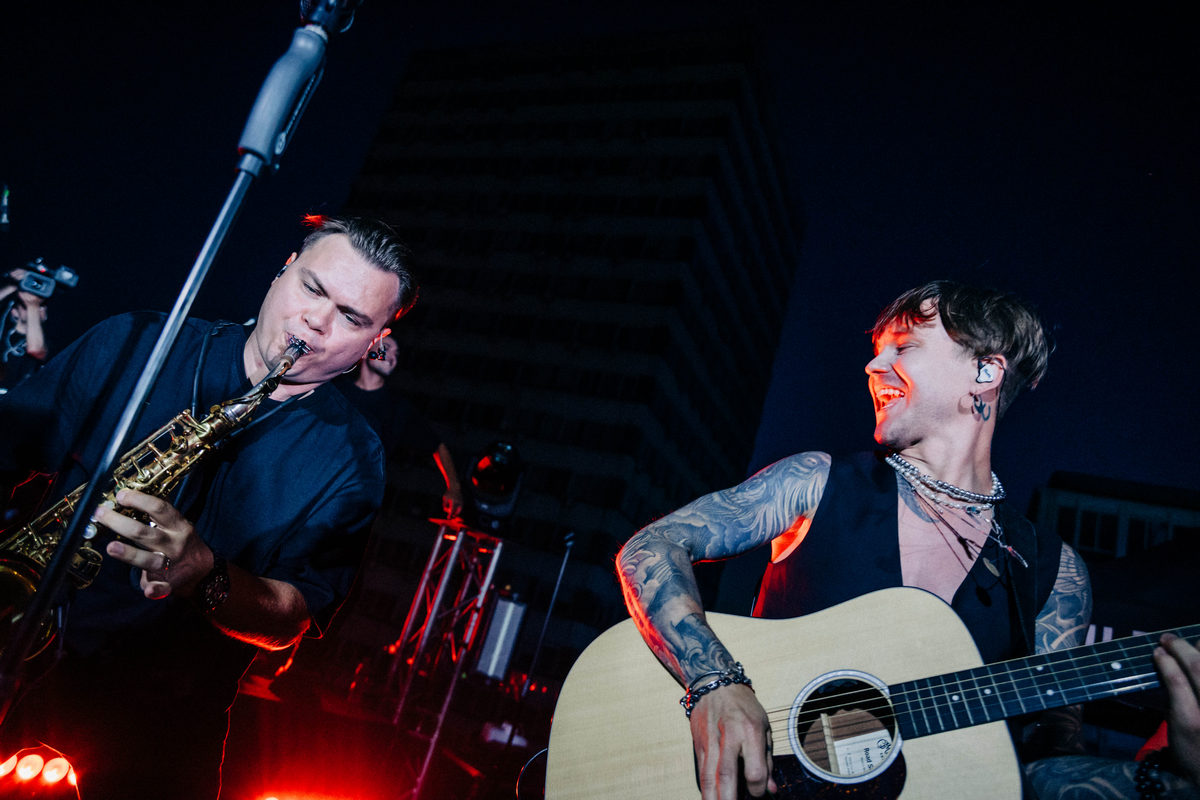 Зірковий лайн-ап концерту на терасі та його формат тримався у секреті до останніх годин. Так, на сцені з панорамним краєвидом на серце столиці виступили електронний дует PROBASS ∆ HARDI, творці треку «Доброго вечора, ми з України», топвиконавці MÉLOVIN, який презентував нову пісню “Don’t need your love”, та Артем Пивоваров.