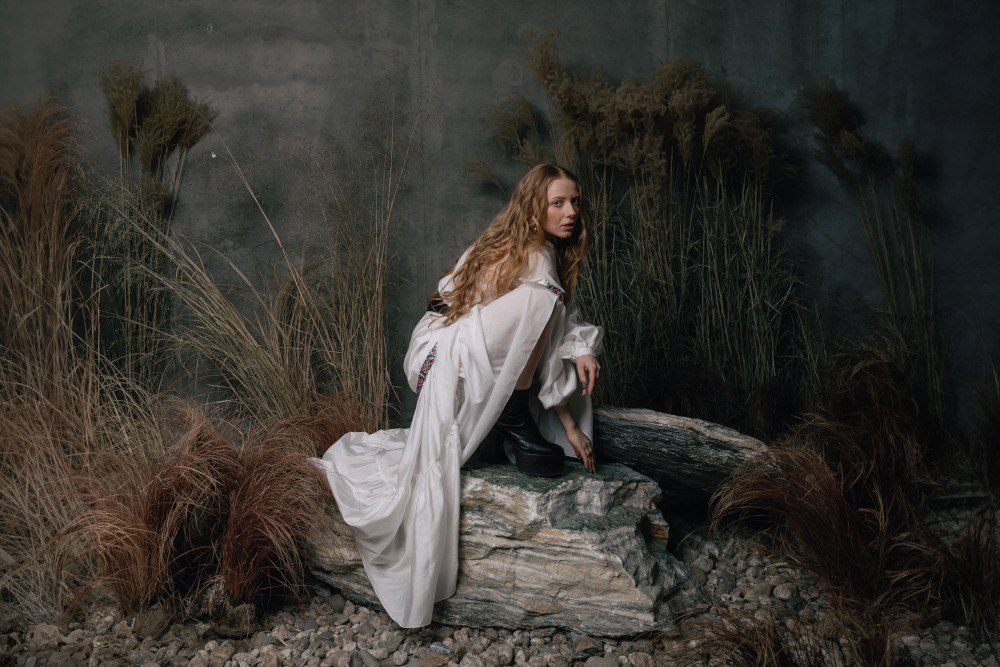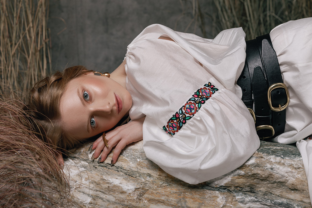 Мінімалістичні ескізи набули сучасної форми за рахунок оновлених елементів крою, натуральних екологічних тканин і технологій. До колекції увійшли 5 одиниць одягу, зокрема, сукня міді, плахта, корсетка, кардиган та етножакет у сучасній інтерпретації.