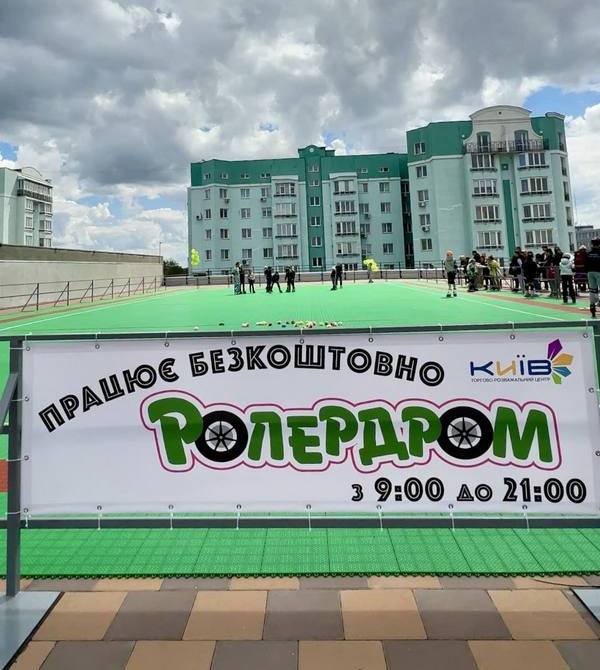 На даху ТРЦ Київ 10 травня запрацював сучасний роллердром із професійним покриттям. Зазначається, що це перша подібна локація у місті. До того ж, простір відкритий безкоштовно, для входу необхідно мати власні ролики та захист.