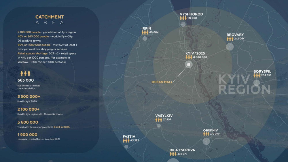 ТРЦ Ocean Mall розташований в неподалік центра столиці, де працює 82 000 людей. І, попри велику війну, прогнозується понад 1 млн туристів.