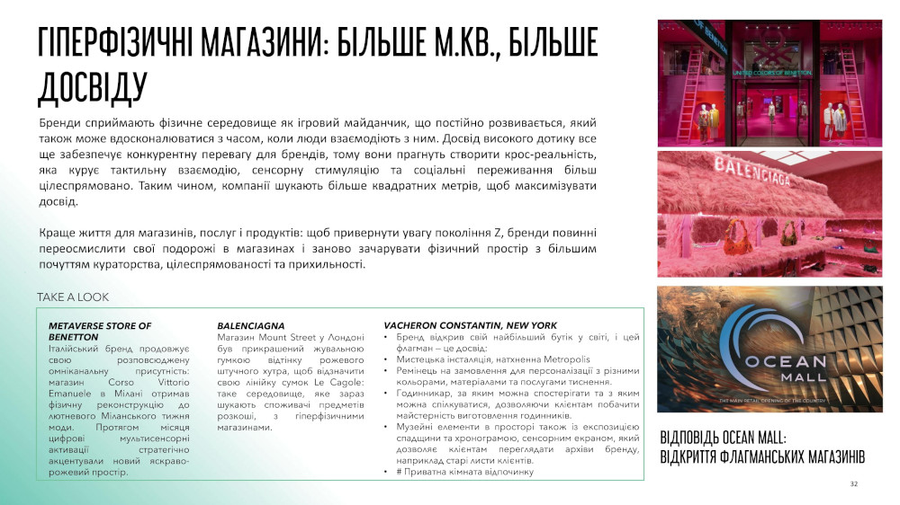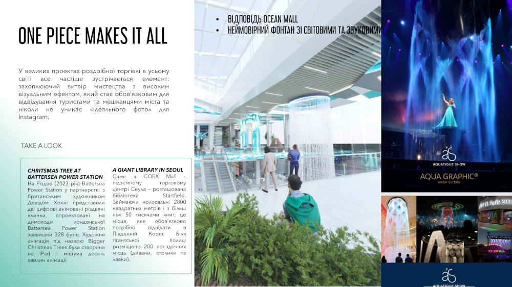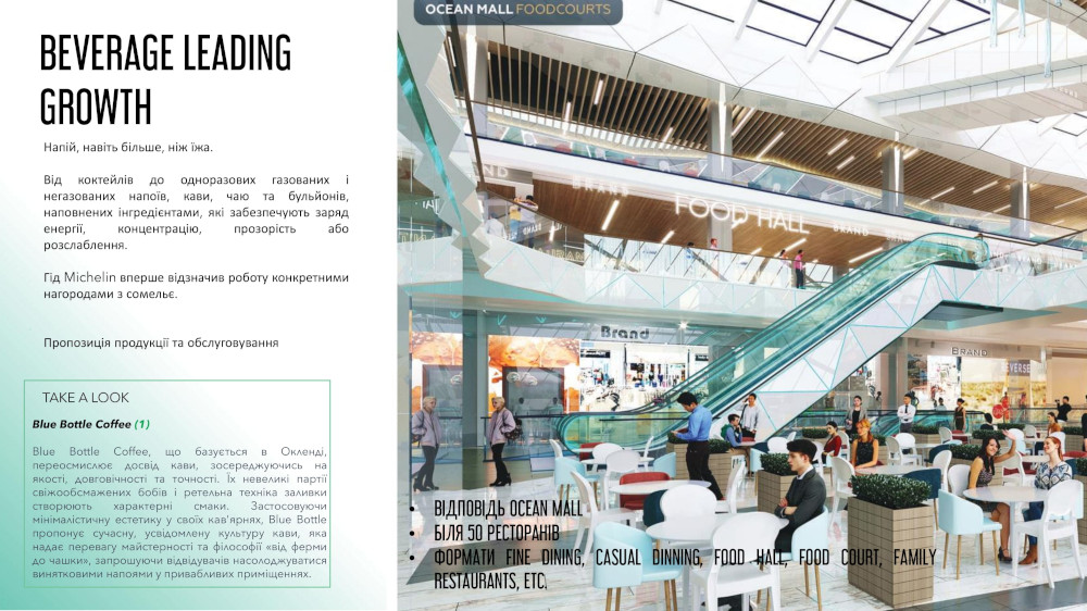 Наведемо приклади деяких трендів, які будуть втілені в ТРЦ Ocean Mall.