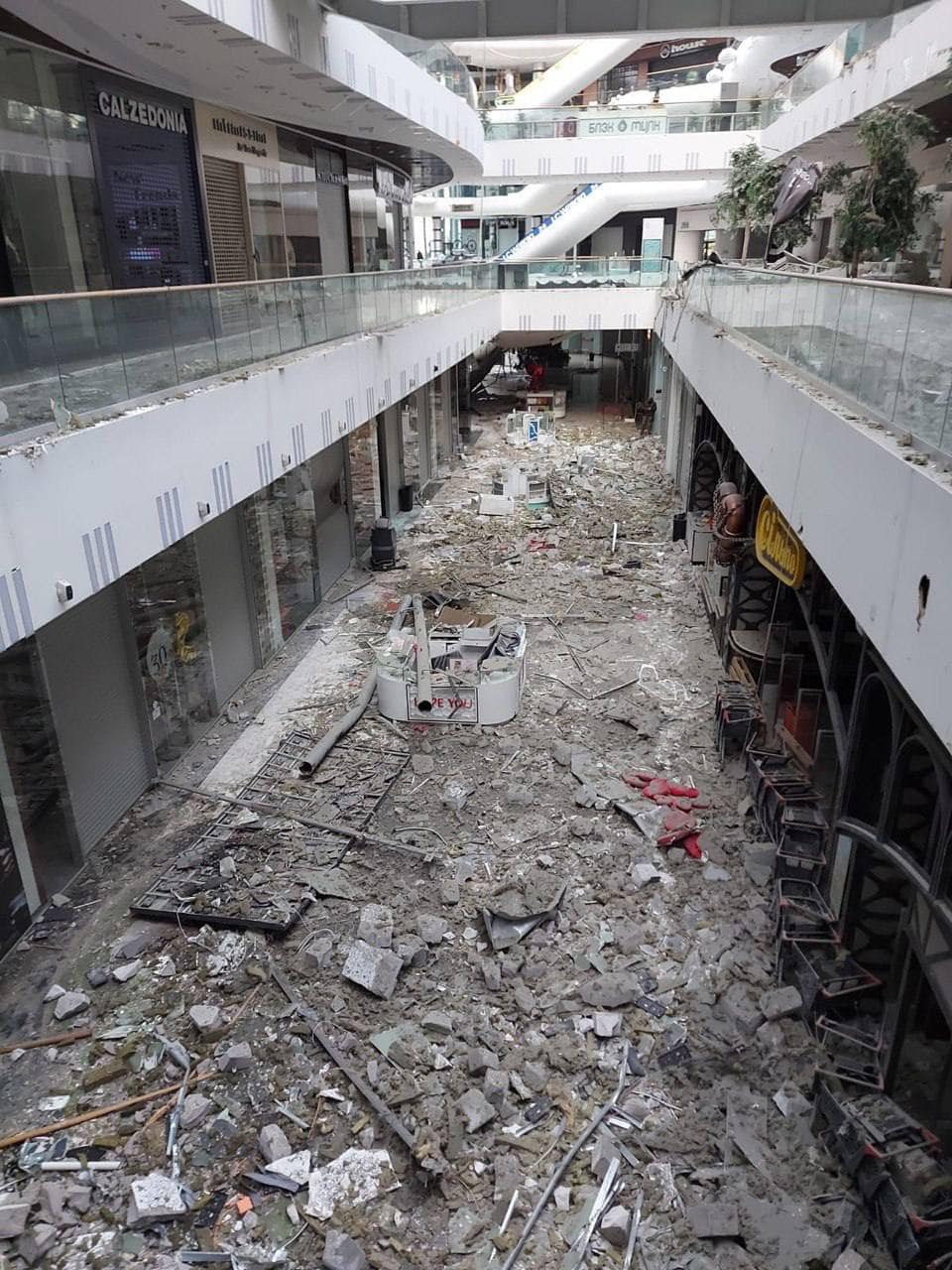 Начальник Слідчого управління ГУ НПУ у Харківській області Сергій Болвінов на своїй офіційній сторінці у Facebook опублікував фотографії зруйнованого торговельно-розважального центру зсередини. Голова Харківської обласної державної адміністрації Олег Синєгубов згодом розповів, що російські окупанти пошкодили купол ТРЦ тяжкою системою залпового вогню “Смерч”. Внаслідок цього всередині стався обвал. На щастя, внаслідок події ніхто не постраждав.