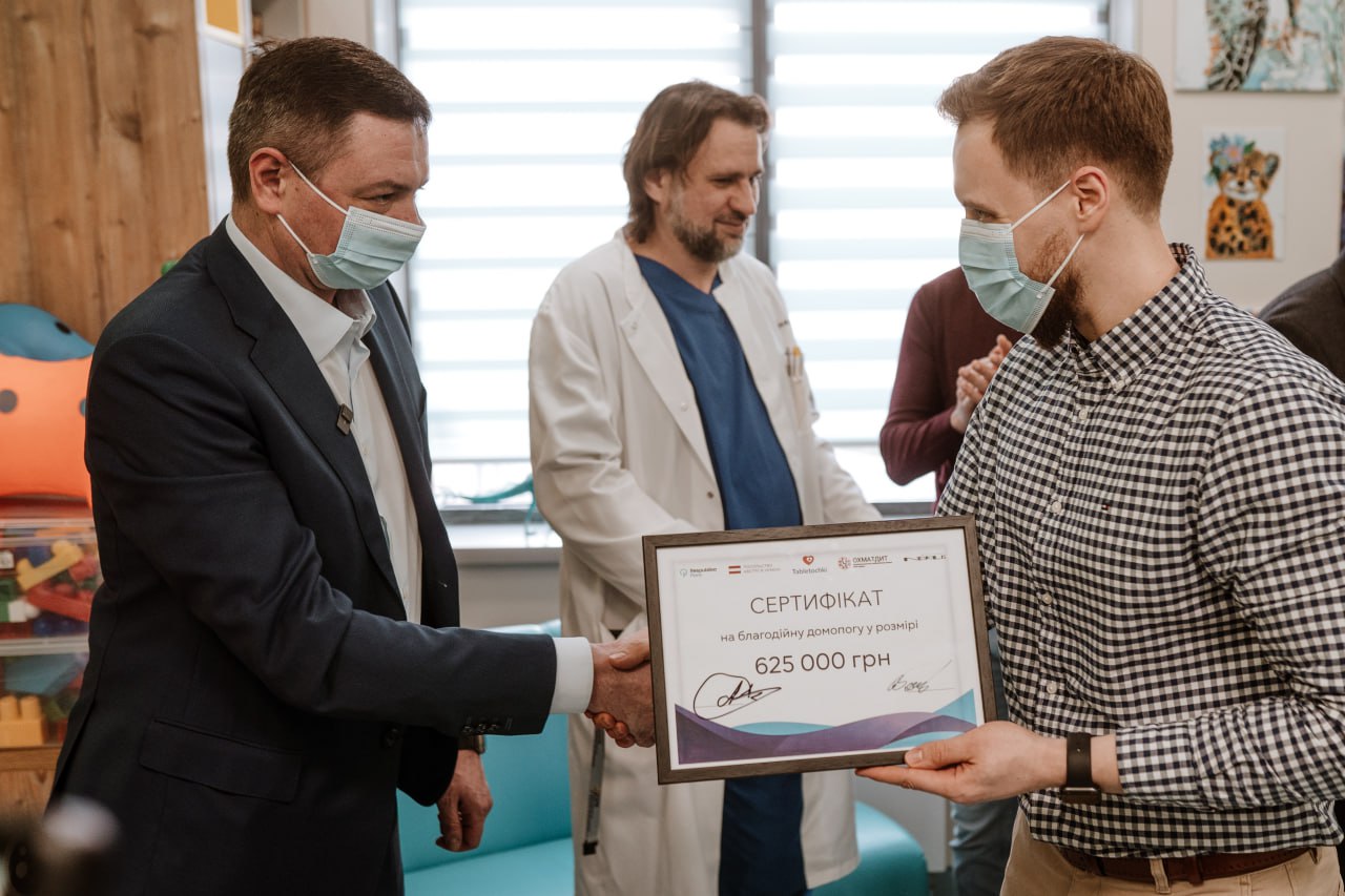 21 березня в НДСЛ Охматдит відбулося урочисте вручення фінансової допомоги в рамках річного меморандуму між ТРЦ Respublika Park та БФ Таблеточки. 625 000 гривень буде спрямовано на закупівлю ліків та витратних матеріалів для проведення нейрохірургічних операцій дітям з онкологічними захворюваннями. Подію відвідала заступниця посла Австрії в Україні Анна-Марія Штайнер.
