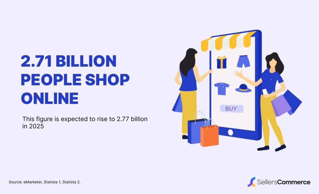 Загалом нині 2,71 млрд людей по всьому світу роблять онлайн-покупки на спеціалізованих платформах електронної комерції або в соціальних мережах. Це означає, що 33% населення світу купує онлайн, що на 2,7% більше, ніж у минулому році. В 2025 році кількість онлайн-покупців зросте до 2,77 млрд за рахунок подальшого розвитку електронної комерції більшого проникнення інтернету та зручності здійснення покупок. Найбільше залучені покупці у Китаї (915,1 млн) та США (270,1 млн).