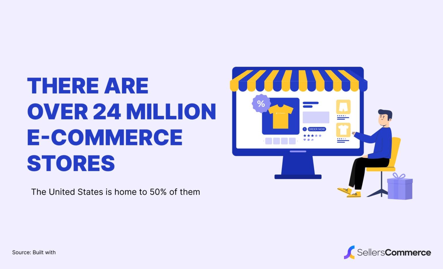 Станом на 2024 рік у світі існує 26,6 млн сайтів електронної комерції, що на 3,83% більше, ніж у попередньому році. Тобто щодня запускалося по 2685 веб-сайтів електронної комерції. Майже половина усіх сайтів електронної комерції знаходиться в США. Більшість онлайн-магазинів працюють на Shopify і Wix, кожен з яких забезпечує 19,07% і 11,84% магазинів відповідно.