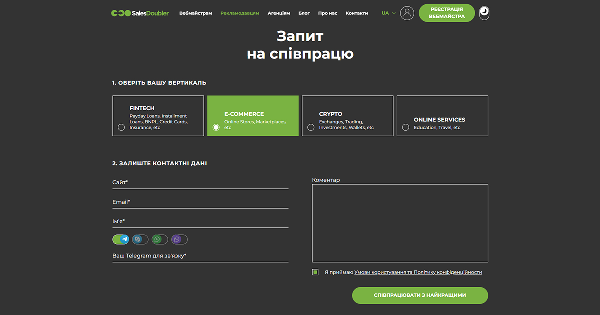 Реєструйся на платформі SalesDoubler і ми допоможемо вам реалізувати бажані KPIs з постоплатою за результат.