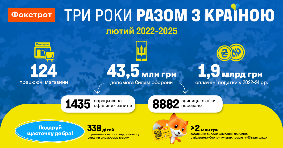 До третьої річниці повномасштабного вторгнення рф в Україну в мережі електроніки і побутової техніки Фокстрот підбили підсумки роботи.