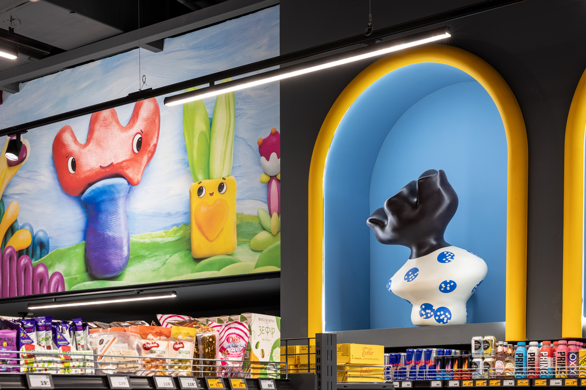 Концепція нового супермаркету занурює гостей в історію кіберкультури: від перших комп’ютерів до сучасного кіберкору — напряму, натхненного футуристичною та науково-фантастичною модою.