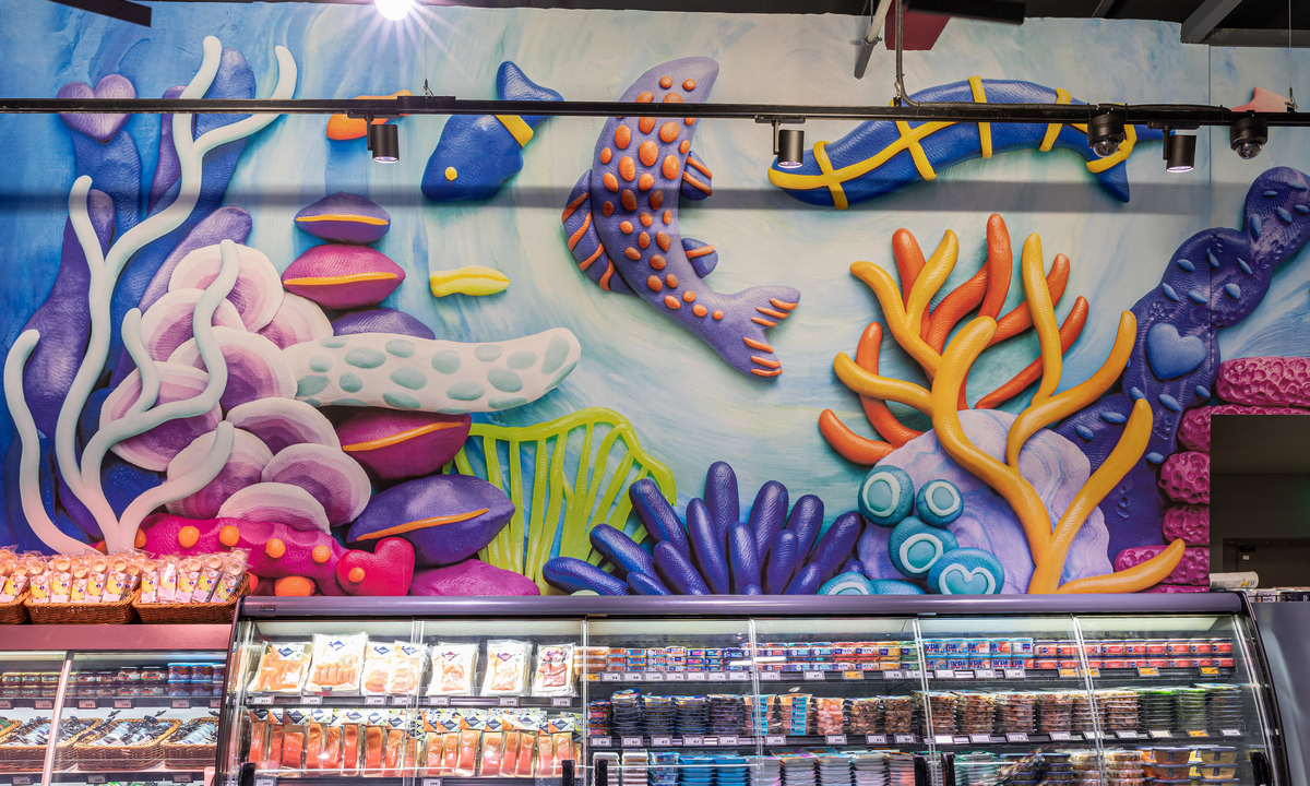 Його площа – 1211 кв. м. Унікальний дизайн цього магазину переплітає в собі теплі барви та фантазії, натхненні пластиліном. Плавні лінії, яскраві кольори та текстури оживляють простір. Колони нагадують бруски пластиліну, які натякають: можна зліпити, що забажаєте, все у ваших руках.