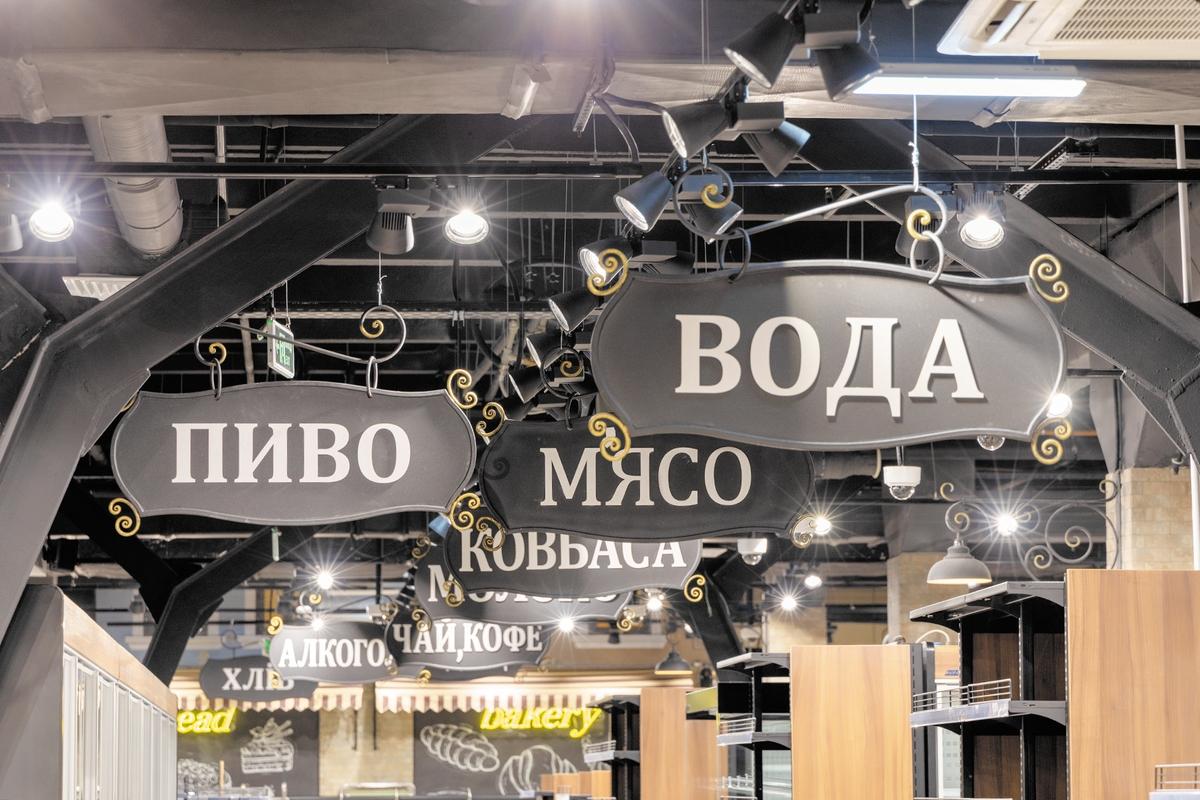 На першому поверсі торгового центру розмістився продуктовий супермаркет Dmart площею понад 1200 кв. м. Дизайн магазину виконаний в стилістиці старої Праги з її ліхтарями і кам’яними стінами. В асортименті представлені свіжі овочі та фрукти, хлібобулочні та молочні вироби, м’ясо, риба, морепродукти та інші традиційні для FMCG-рітейлу товари – всього близько 15 000 SKU. Також в супермаркеті Dmart є відділ кулінарії і власна піцерія. Покупців обслуговує шість звичайних і чотири експрес-каси.