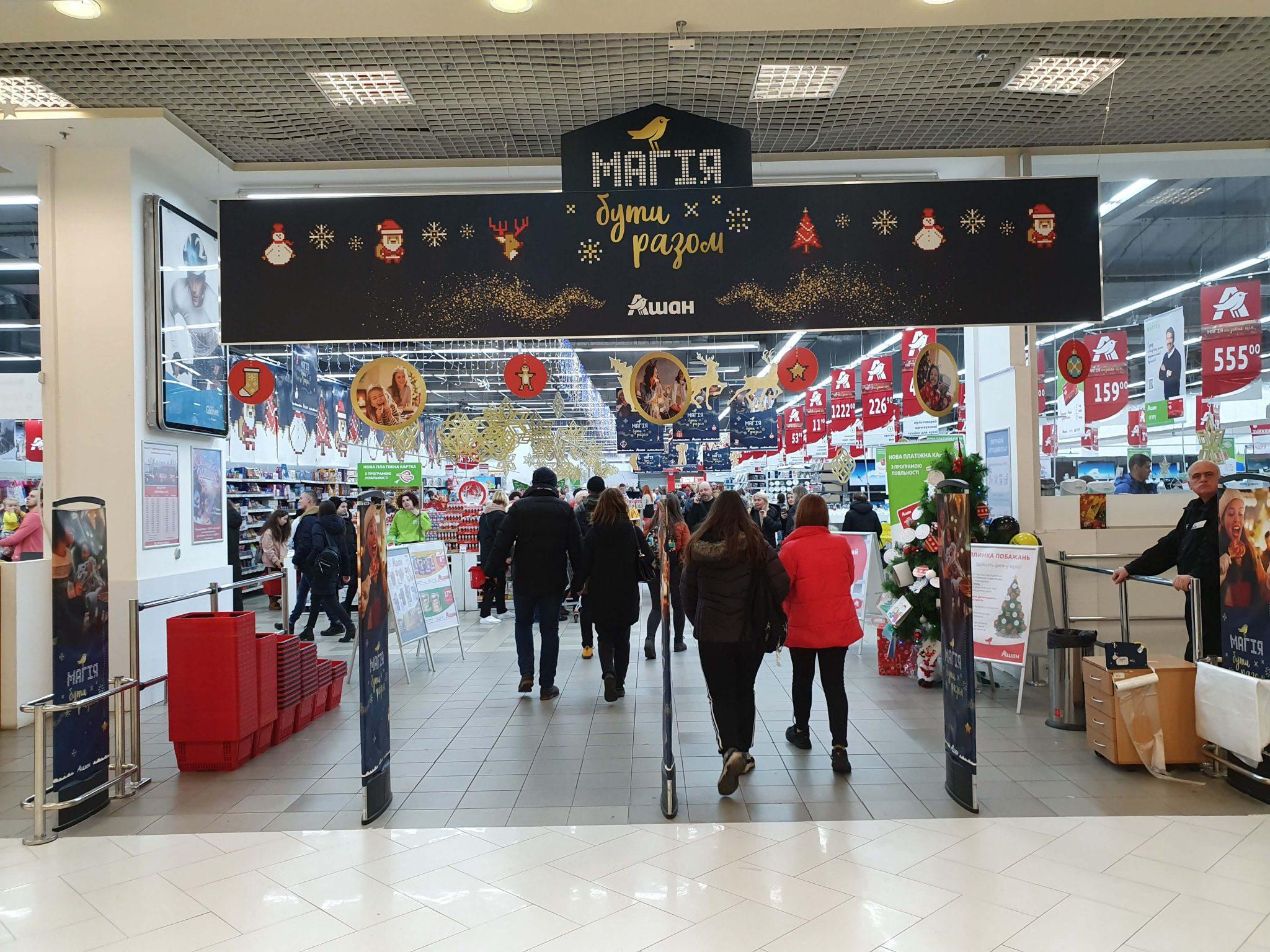 Ашан – якірний FMCG-оператор ТРЦ Караван – під час реконструкції ТРЦ працював практично без перерв. А в день відкриття під слоганом «Магія бути разом» оновив вивіски і презентував новорічний асортимент.
