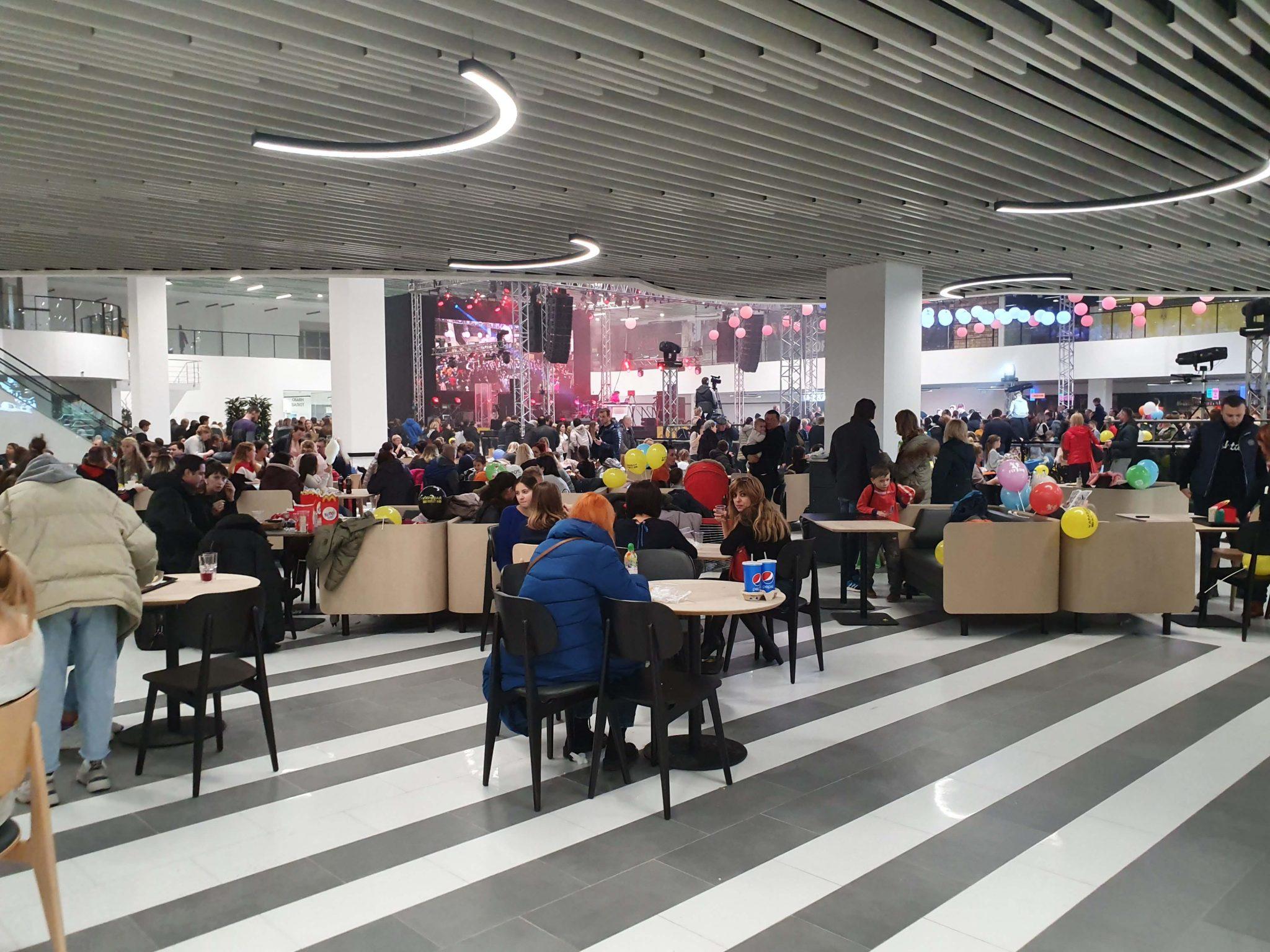 На фуд-корті в Караван Outlet представлені McDonald’s, Salateira, Solo Pizza, Ситі Мандри, Georgia, Panda Noodle House. Незабаром до них приєднаються ще кілька food-операторів – Casta Burger, Mafia і деякі інші. Мабуть, це єдина зона в ТРЦ, якої знижки не торкнулися. Але при цьому столів для розсадження гостей на багатолюдному святі насилу вистачало.