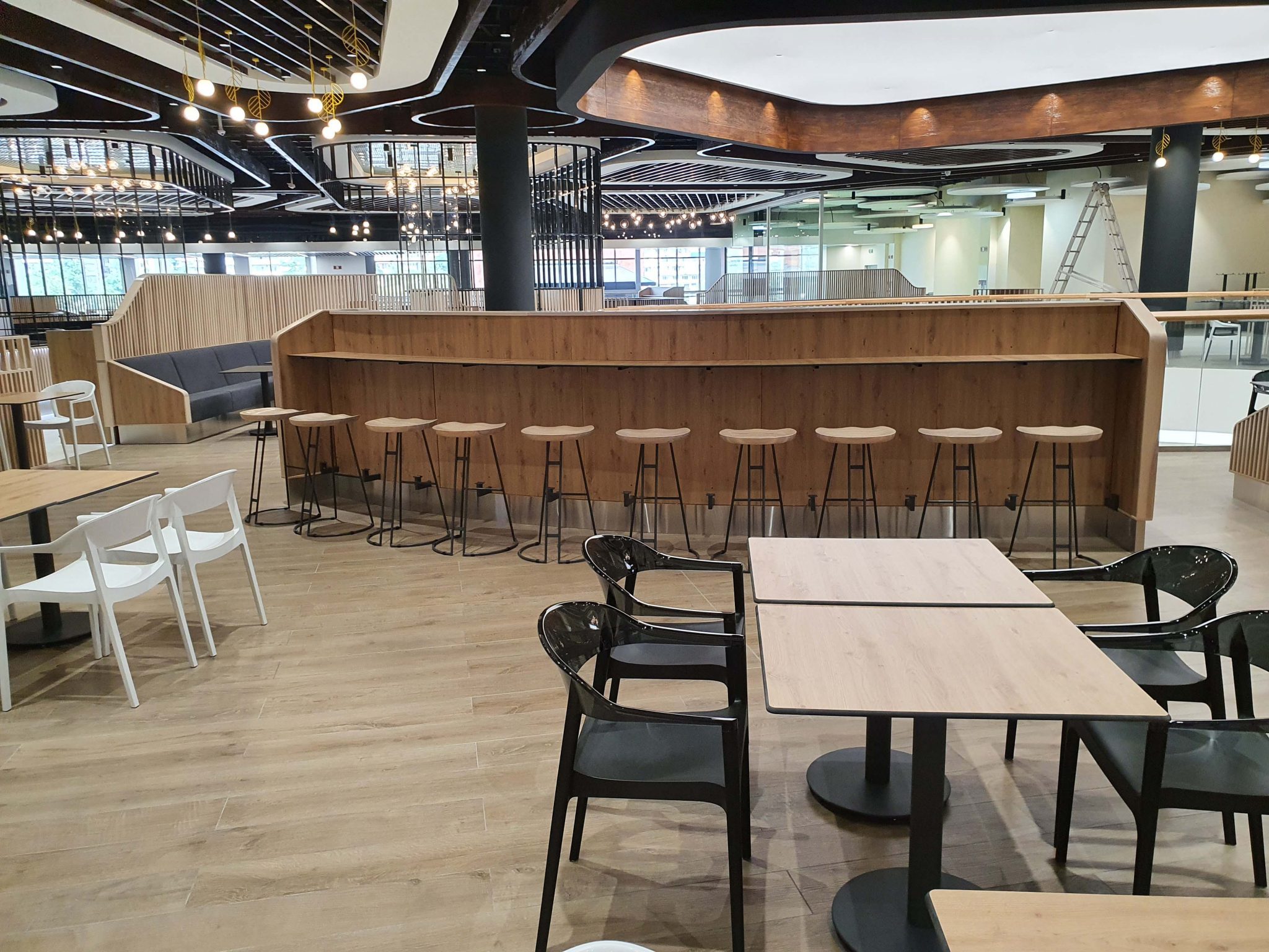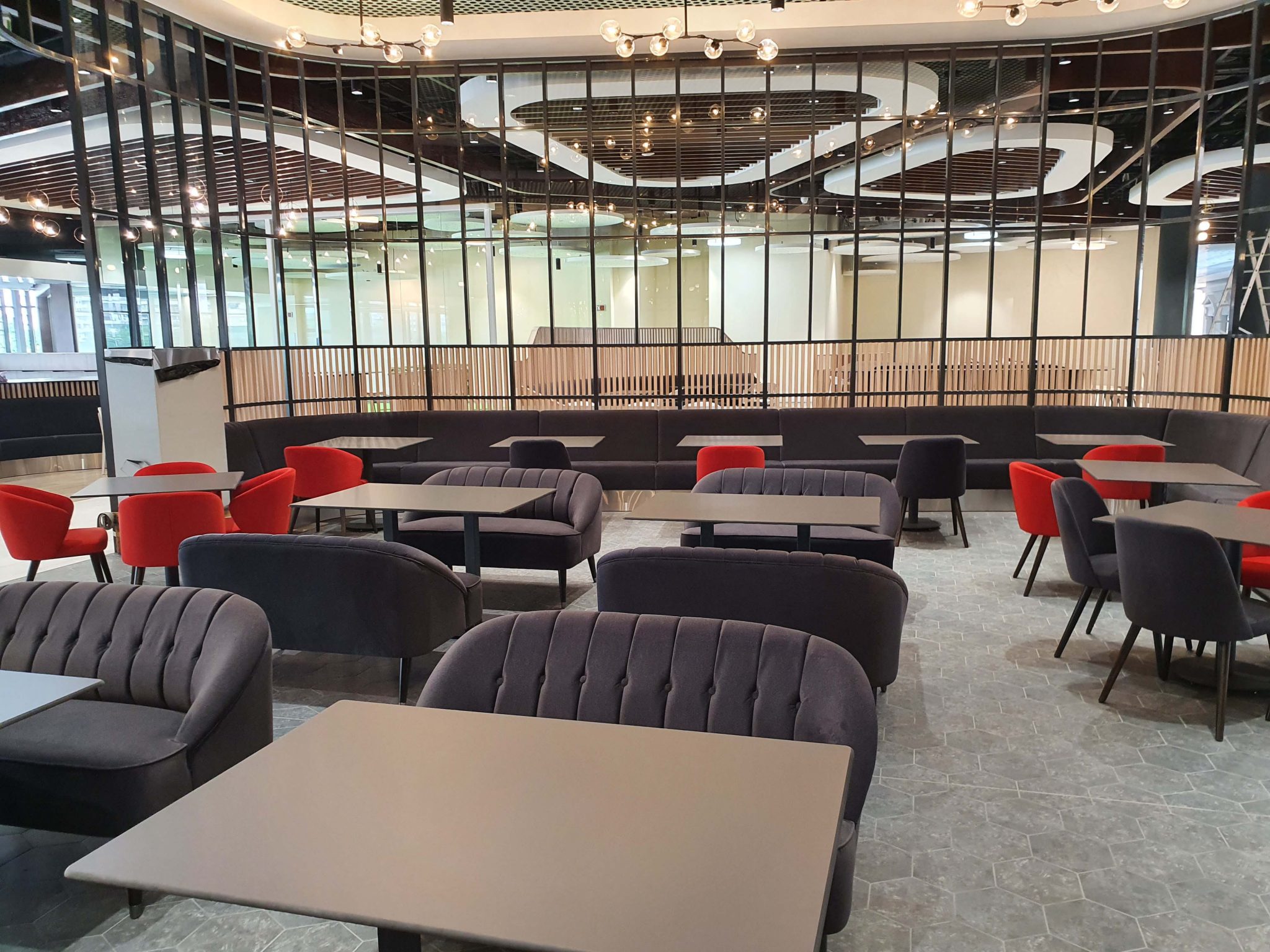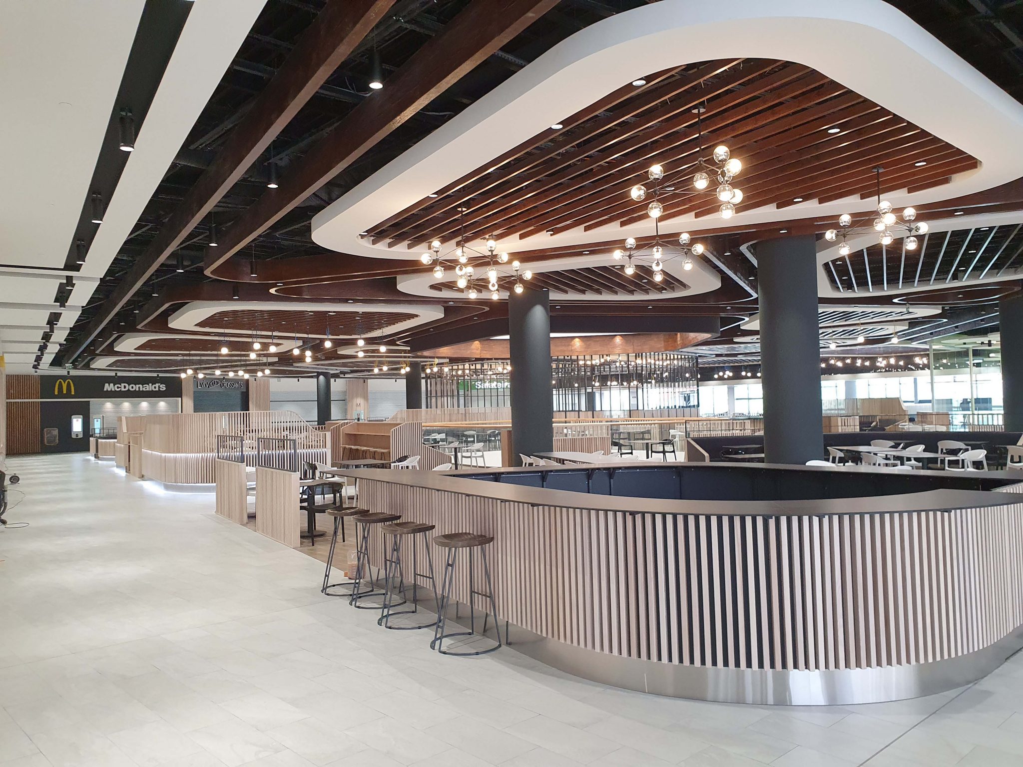 Тут же, на другому поверсі, розпочне роботу фуд-корт, який складатиметься з 16 точок і 8 окремих ресторанів. Обладнані тут 725 посадкових місць зроблять його найбільшим у столиці. При цьому фуд-корт планується розділити на п’ять зон: еко, лофт, green, лаунж, а також дитячу зону.