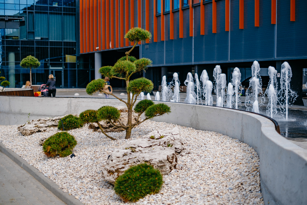 Крім того, поки ТРЦ Retroville працював в обмеженому режимі через коронавірусні заборони, близько бізнес-центру й одного з виходів ТРЦ комплексу обладнали сухий фонтан.