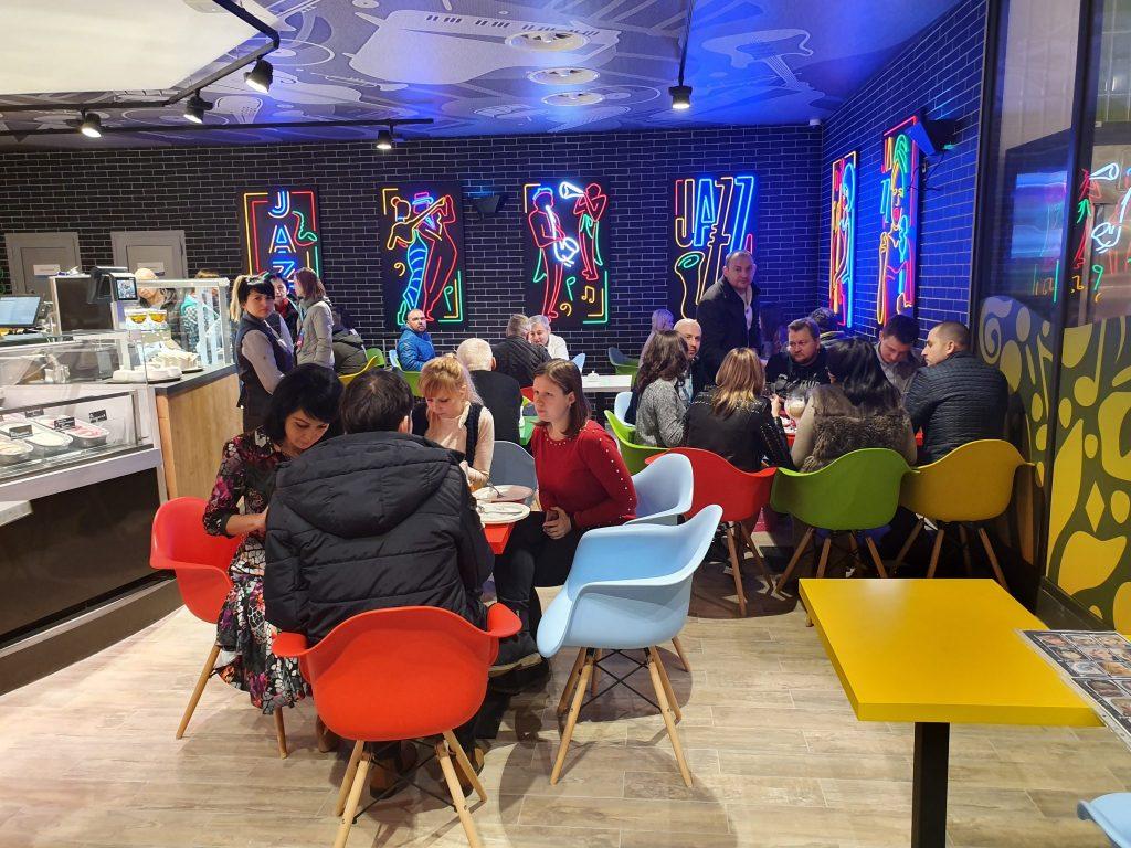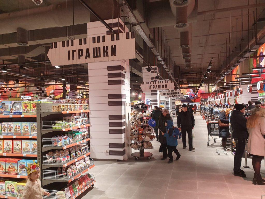 Значну частину людей в день відкриття привернув до себе Сільпо, який, як звичайно, задіяв безліч аніматорів і представив абсолютно новий концепт. В цей раз супермаркет, що розмістився на площі 2500 кв. м, відкрився в стилі «Джаз». Стіни об’єкта прикрасили тематичні малюнки, таблички зобразили у вигляді піаніно, номери кас – як барабани, ну а поруч з гастрономією розмістили справжню сцену з роялем, де в день відкриття грали піаніст і саксофоніст.