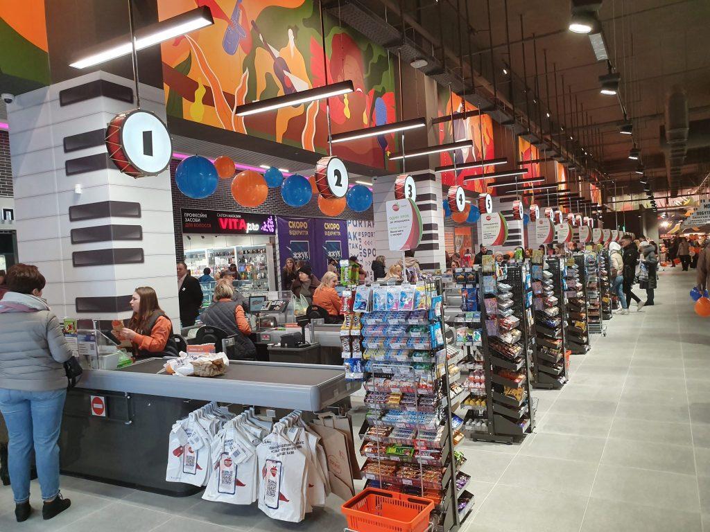 Обслуговує покупців 13 основних кас, 2 — тютюнові та 5 кас самообслуговування. Більше деталей про супермаркет і фотографії з його відкриття можна буде побачити в одному з найближчих фоторепортажів RAU.
