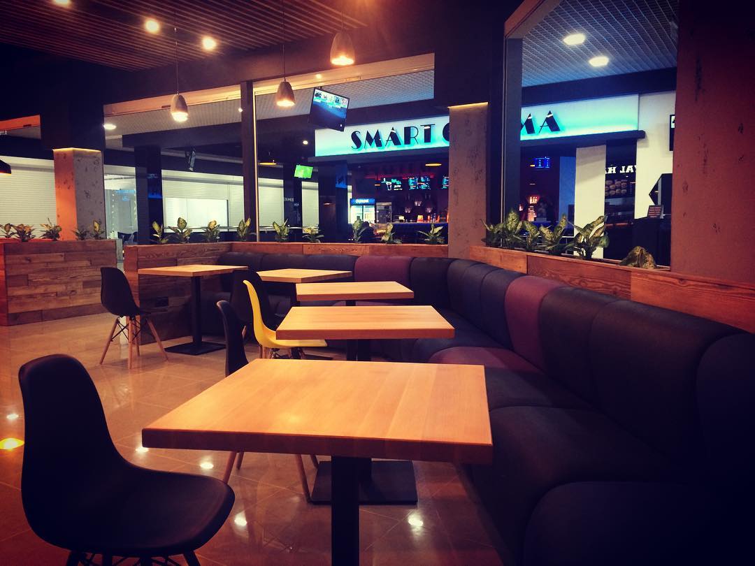 У 7-зальному кінотеатрі SmartCinema, розміщеному на другому поверсі ТРЦ Woodmall, шість залів, розрахованих в середньому на 70 місць. Місткість VIP-зали – до 20 глядачів. Зали оснащені екранами SilverScreen зі срібним покриттям, що дозволяє домогтися більш якісної передачі кольору без втрати яскравості і чіткості зображення, звуковою системою обладнання від компанії QSC і новітнім цифровим проекційним обладнанням японської фірми NEC. Великий зал Sound+ обладнаний лазерним проектором фірми NEC і системою імерсивного звуку Lexicon. VIP-зал обладнаний спеціальними комфортабельними кріслами, які розкладаються в диван.