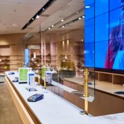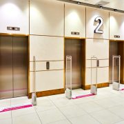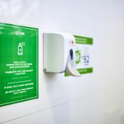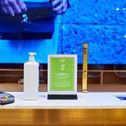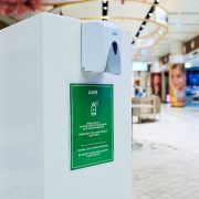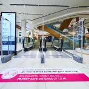 - Диспенсери з дезінфікуючим засобом для рук встановлені на вході та виходах з будівлі, у торгових залах, на касових блоках, в примірочних, біля ескалаторів та у вбиральнях.