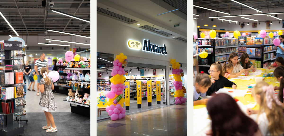З 1 по 3 серпня в ТРЦ Караван (м. Дніпро) відбулося яскраве відкриття нового магазину мережі Akvarel — найбільшого шкільного маркета компанії площею 750 кв. м.