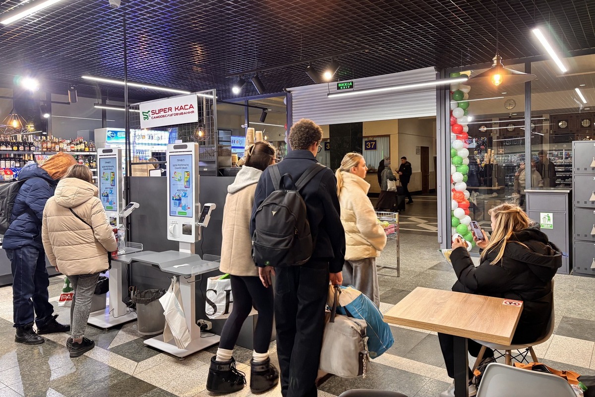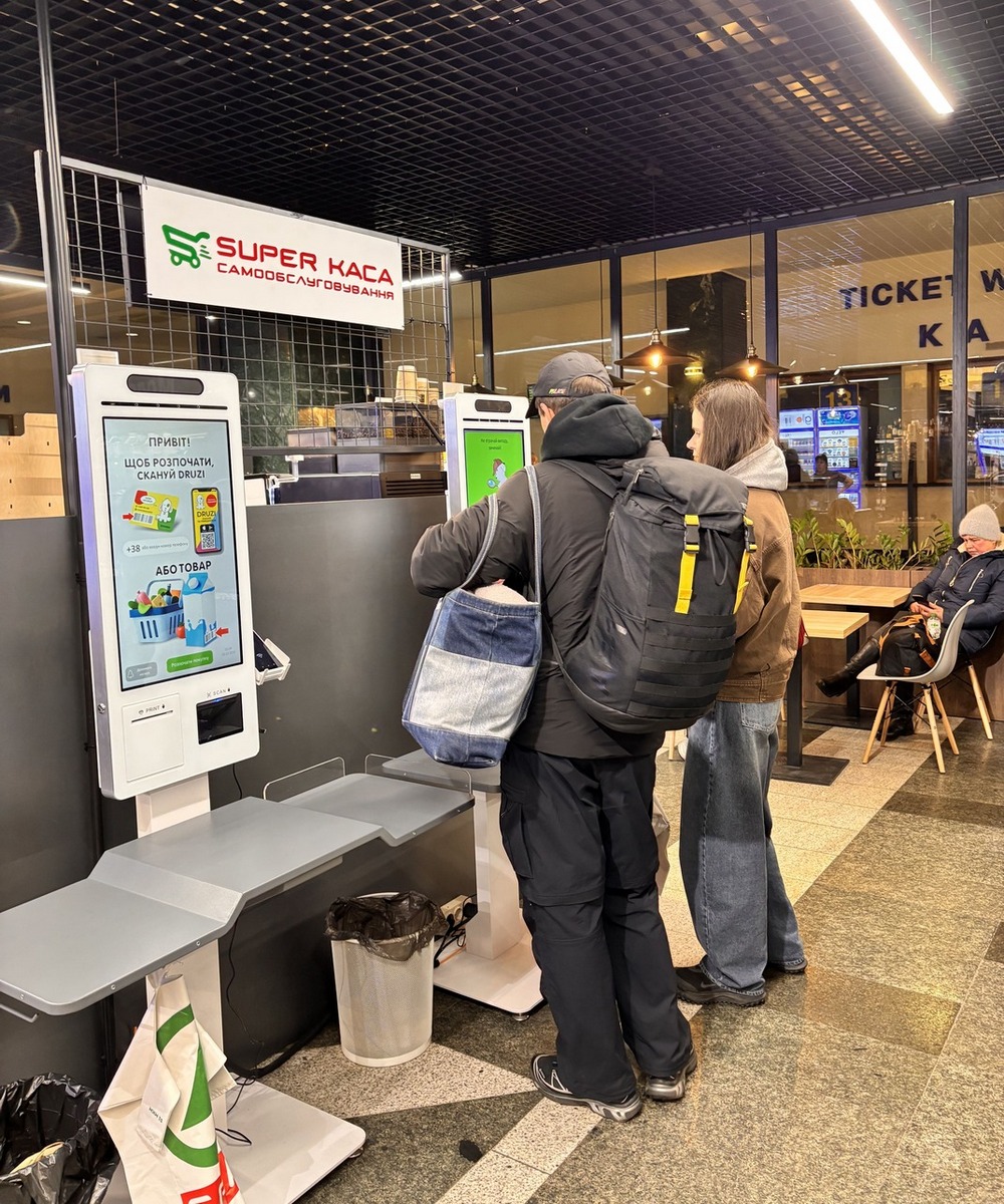 У залі для комфорту покупців облаштовано чотири каси: дві FTG (Food to Go) для швидких покупок і кави з собою, та дві каси самообслуговування (КСО), що забезпечують якісний сервіс навіть у години пік.