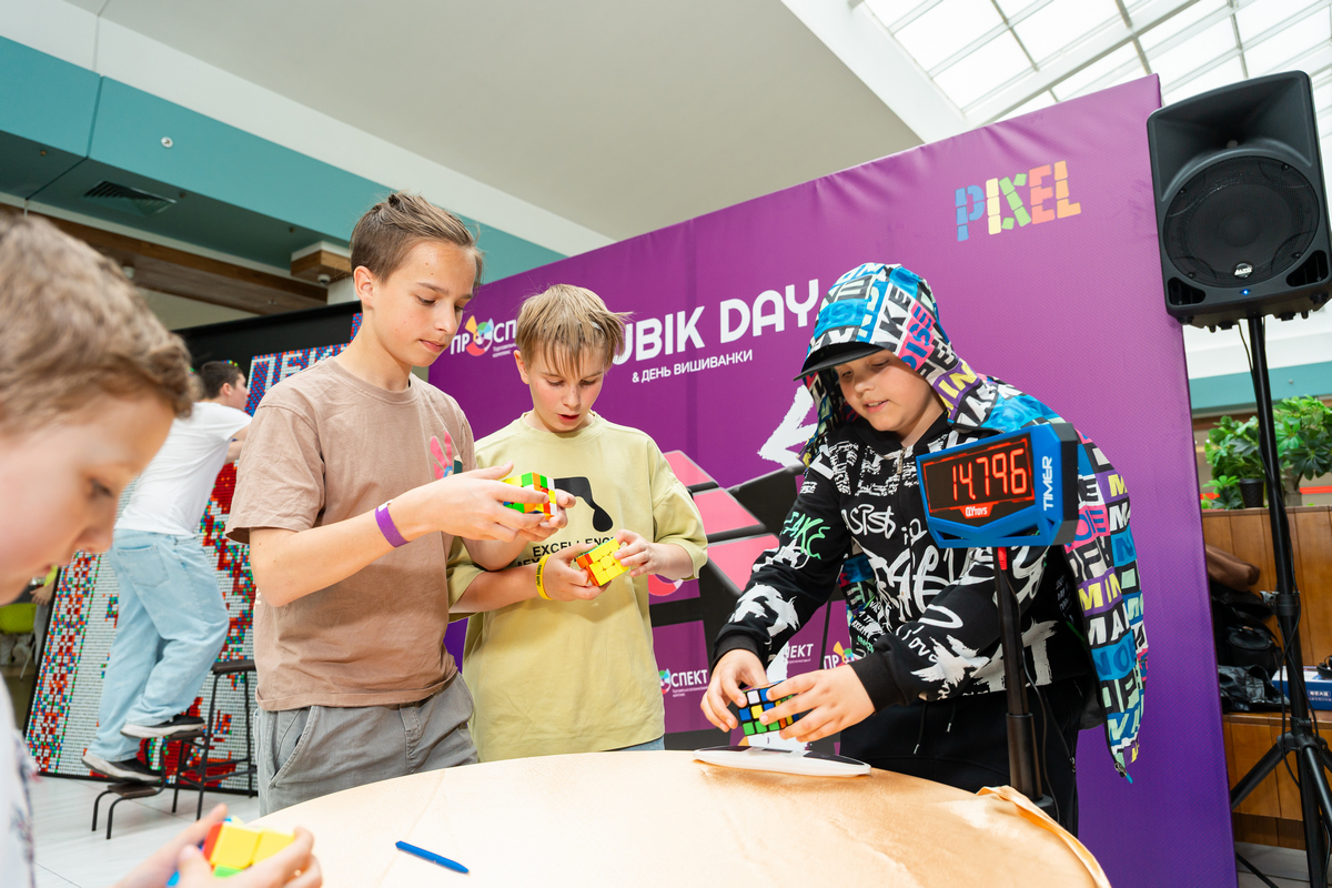 17 травня в ТРК Проспект компанія Arricano організувала “Rubik’s Day & День вишиванки”, поєднавши дві, на перший погляд, різні теми — улюблену головоломку мільйонів і традиційні українські орнаменти. Результатом стала гігантська інсталяція — вишиванка з понад 1500 кубиків Рубіка висотою 2,5 метра, яку спільно створили діти та дорослі всього за три години.