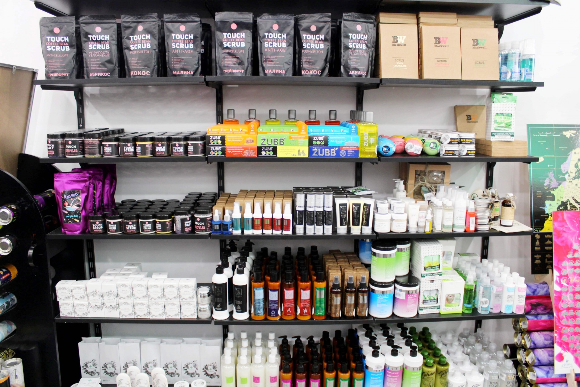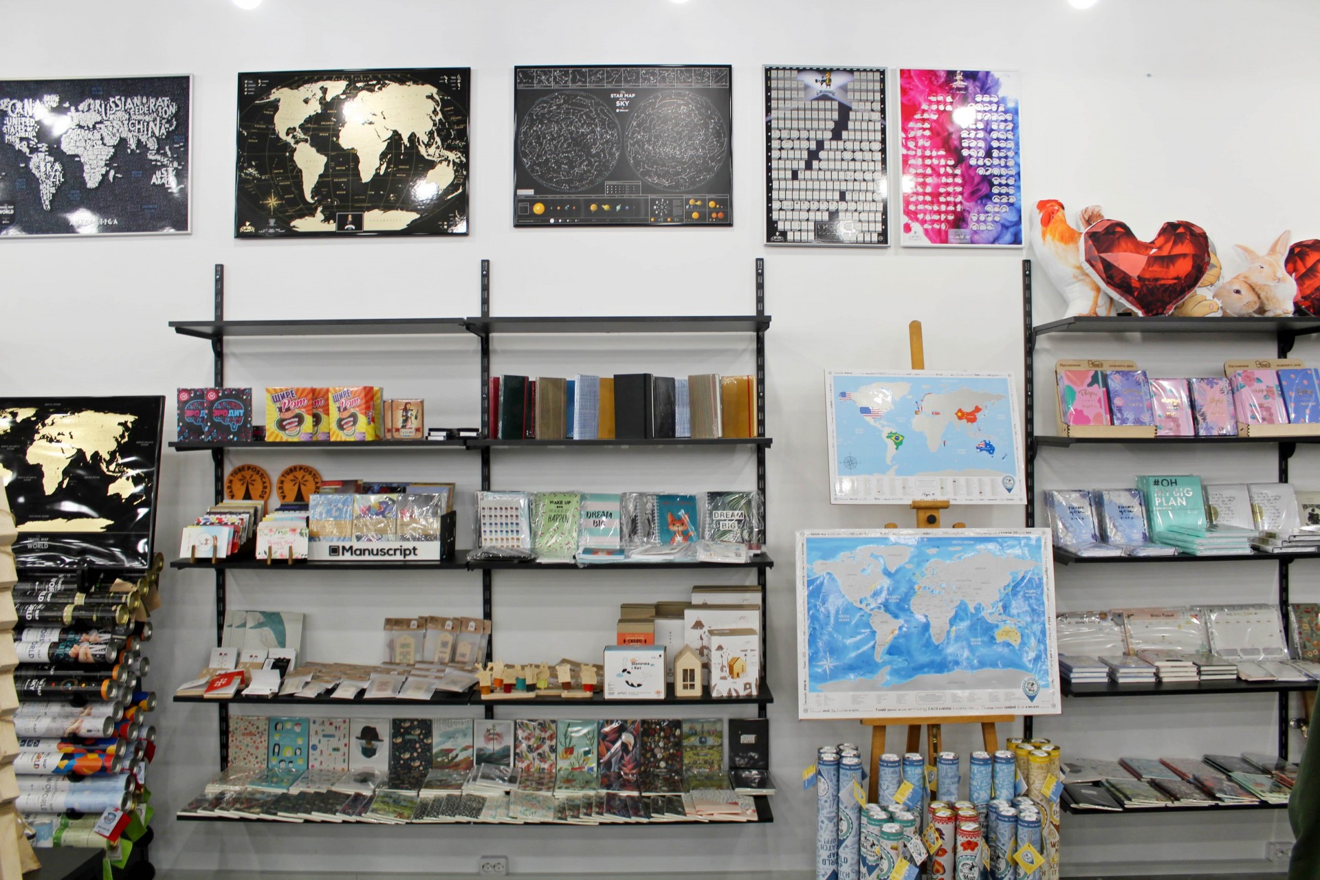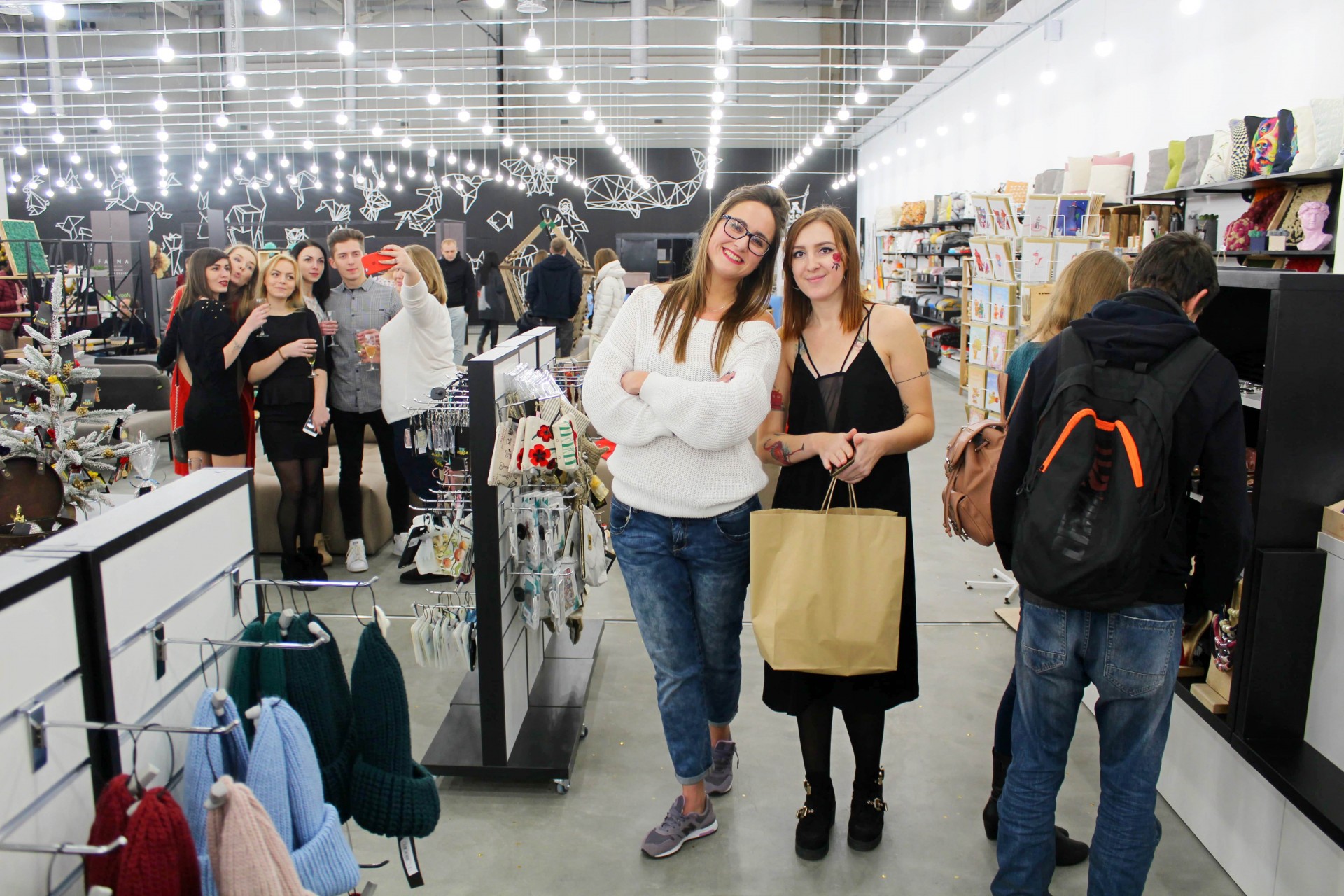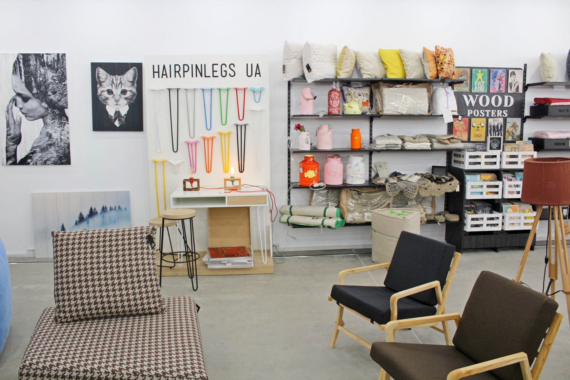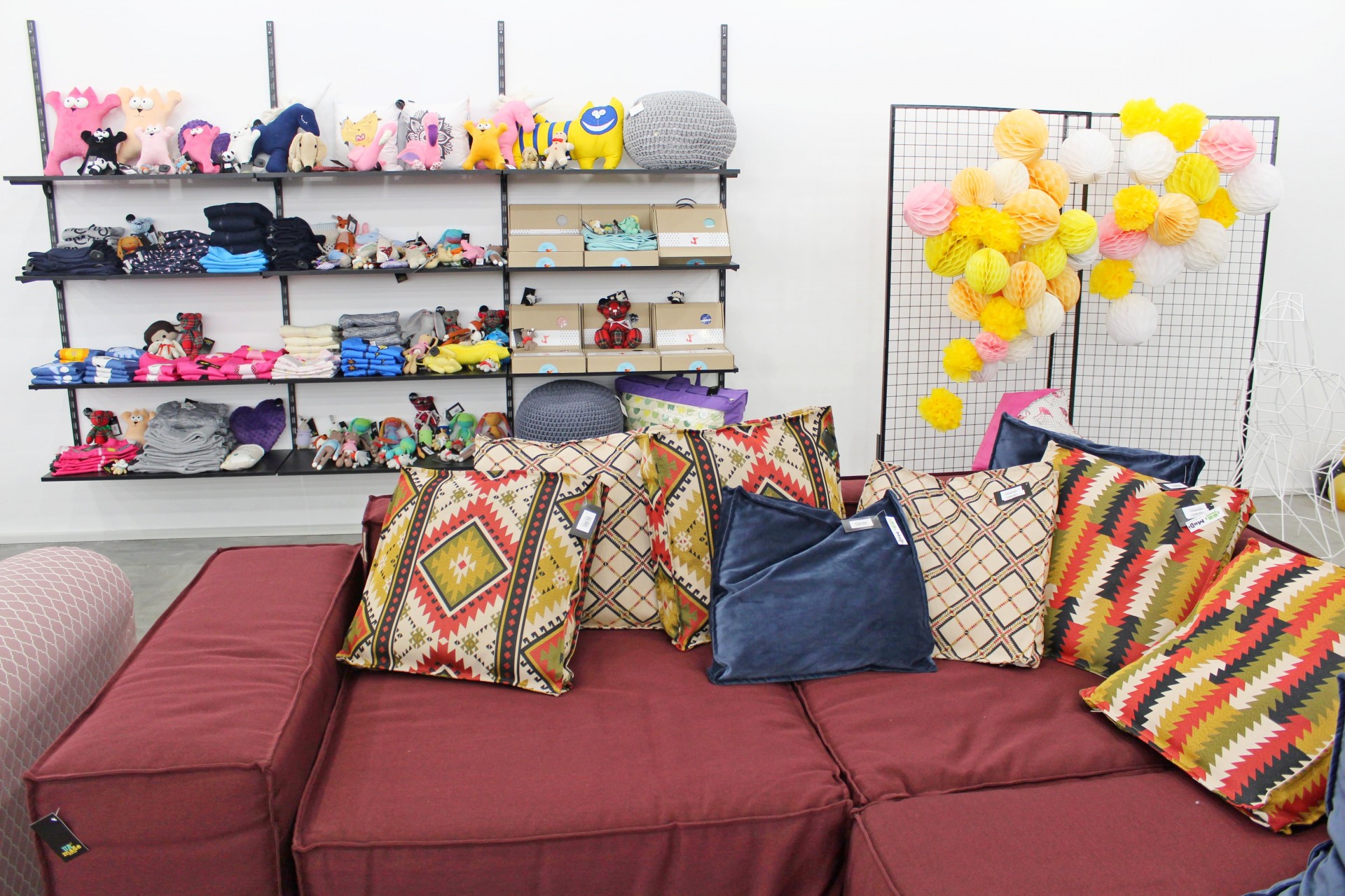 На вході в креативному шопінг-простірі розмістили сувенірну продукцію ручної роботи: посуд, подушки, картини на дереві, hand made косметику, парфуми, а також «канцелярію»: блокноти, планери, скретч-карти карти світу, настільні ігри. Серед інших незвичайних товарів – продукти харчування, які не псуються, і книги видавництва Brand Book Publishing.
