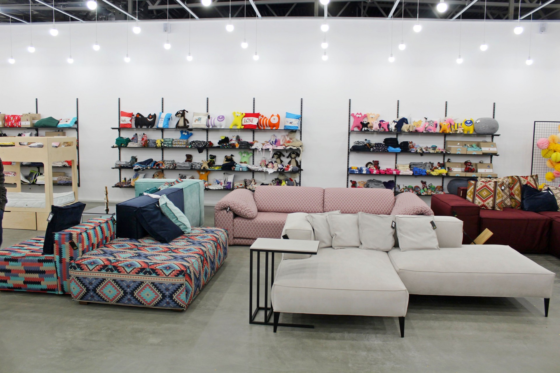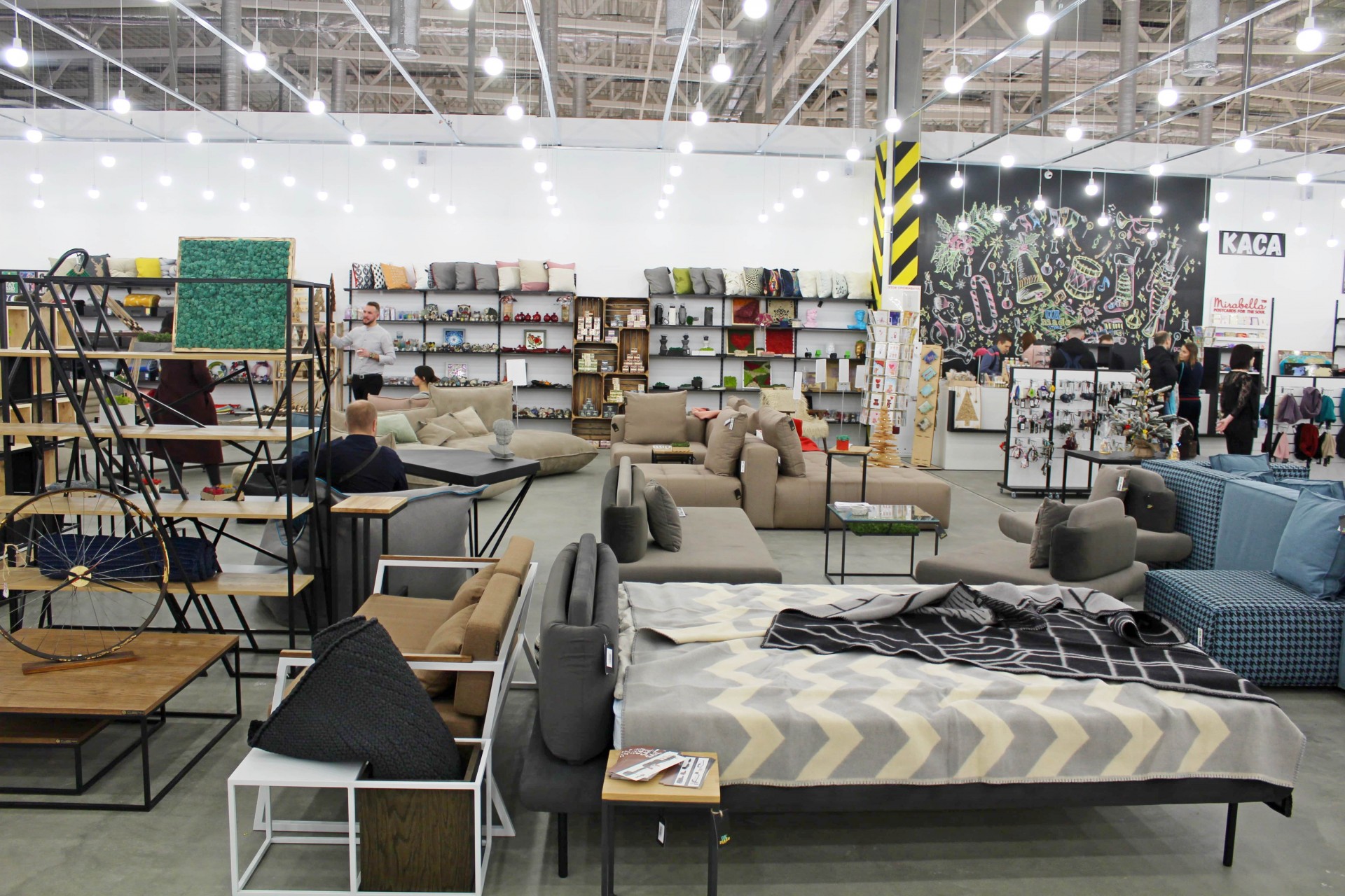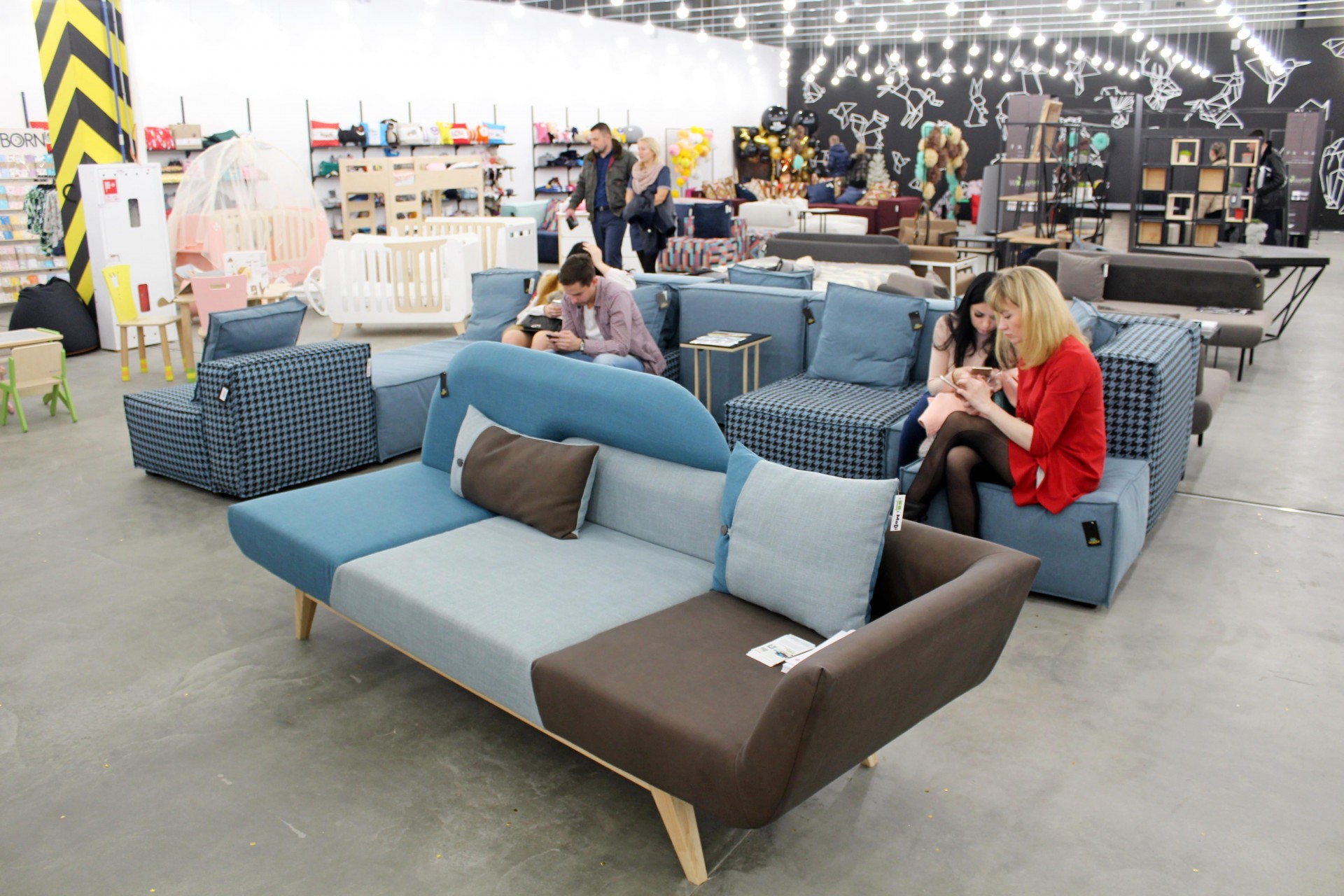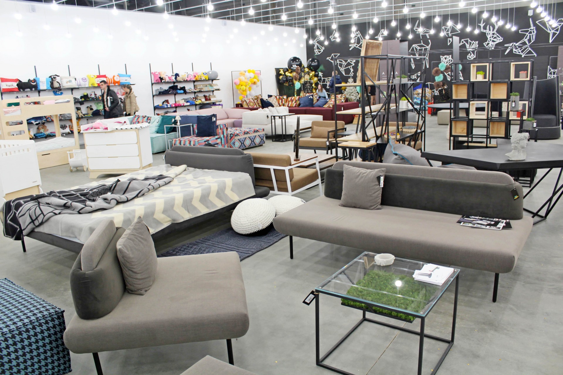 Центральну зону займають меблі. Тут можна знайти таких українських виробників, як Cube44, Yakusha Design, Poparada, Buratinoart та інших. Більшість з них переможці міжнародних конкурсів, про що розповідають розкладені на столах буклети, але при цьому майже усі вони вперше представлені в традиційному секторі, тому для споживача знайомство з ними поза онлайн-магазинами в новинку. Чому багато хто з покупців із задоволенням користуються – присісти відпочити на стильному дивані або кріслі тут в порядку речей.