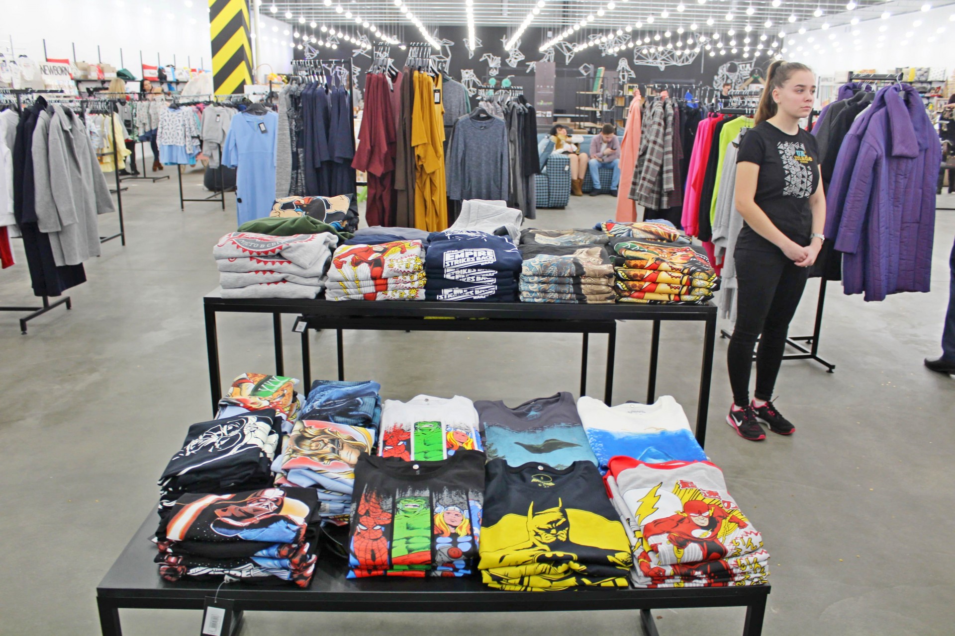 За рукавом входу починається основний простір магазину. Тут представлений весь топовий асортимент одежної продукції UAmade від виробників з усієї України. Серед хітових брендів мережі Христина Кримська називає молодіжну одяг для чоловіків і жінок Black Limit, світшоти Urbanist, жіночий одяг Весни і чоловічий одяг Feel And Fly, аксесуари та сумки від AnnaSun і багатьох інших.